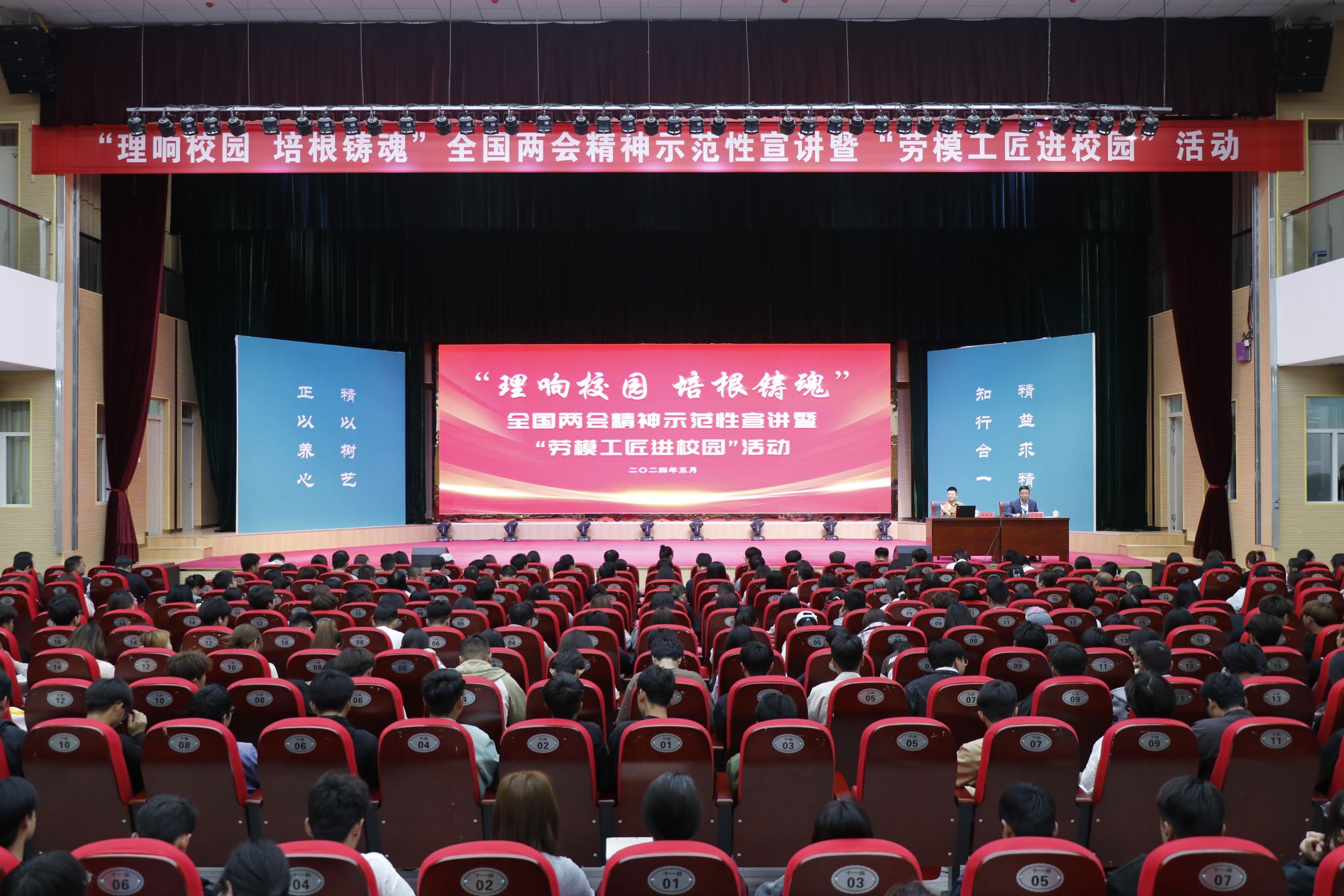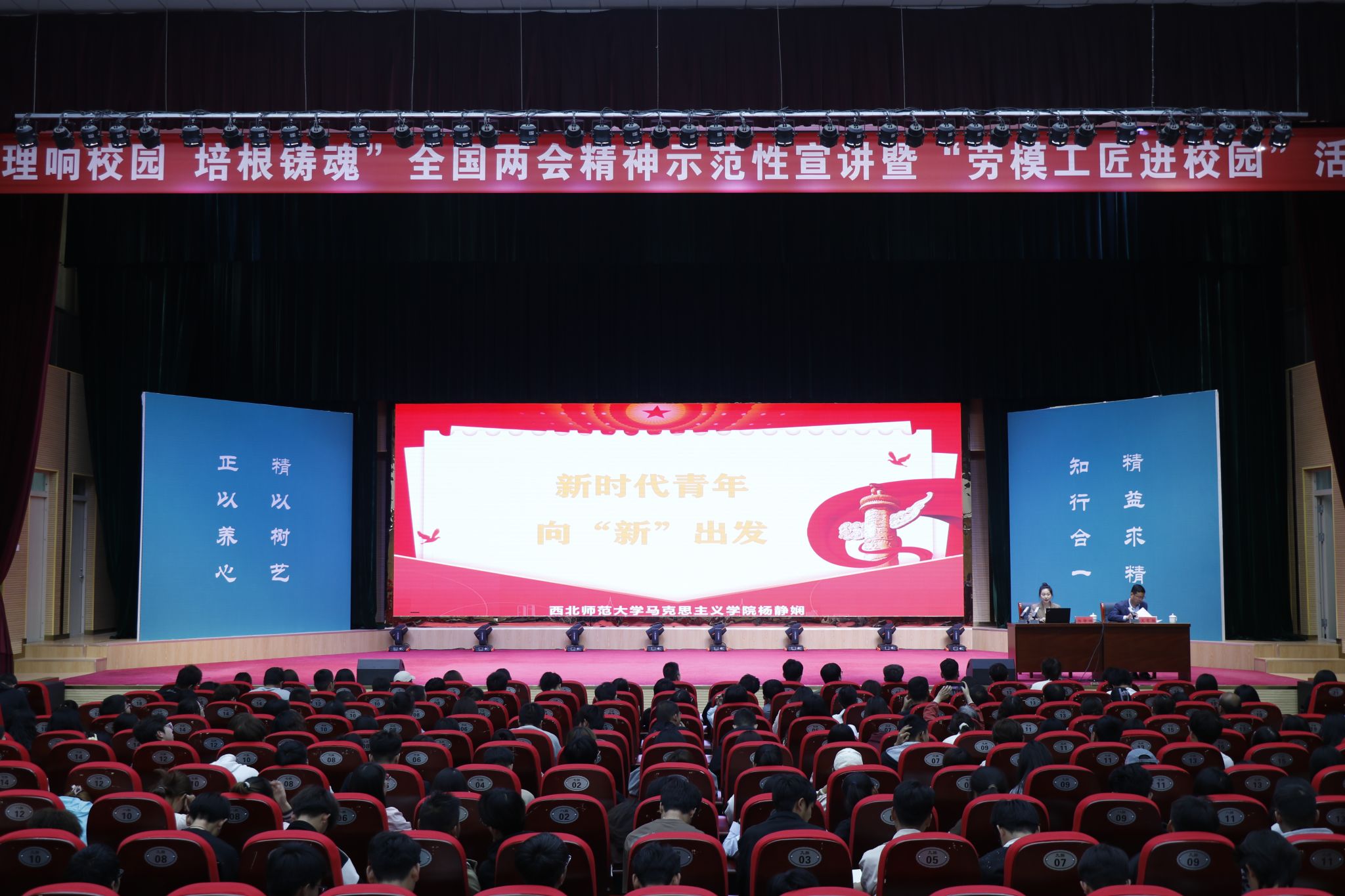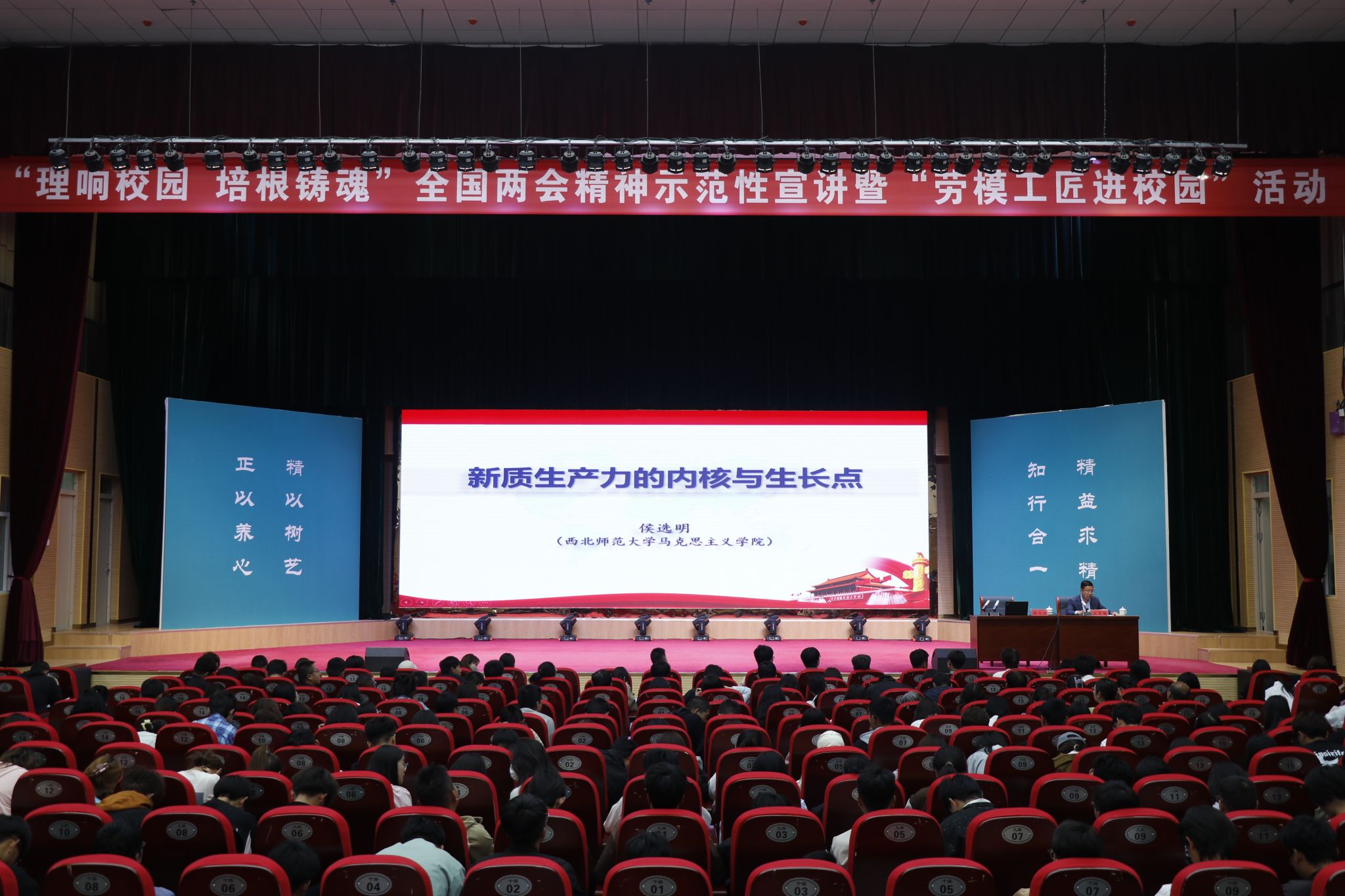 根据省委教育工委、省总工会有关要求,bat365于5月11日,在会议中心礼堂举办“理响校园·培根铸魂”全国两会精神示范性宣讲暨“劳模工匠进校园”活动。第三宣讲团成员中国石油兰州石化分公司合成橡胶厂原丁腈车间操作工、全国劳模汪艳侠,西北师范大学马克思主义学院教授侯选明,西北师范大学马克思主义学院硕士研究生杨静娴为bat365师生宣讲。活动由学校党委委员、副院长文育胜主持,学校中层领导、各二级学院院长及全校500余名师生代表聆听宣讲。