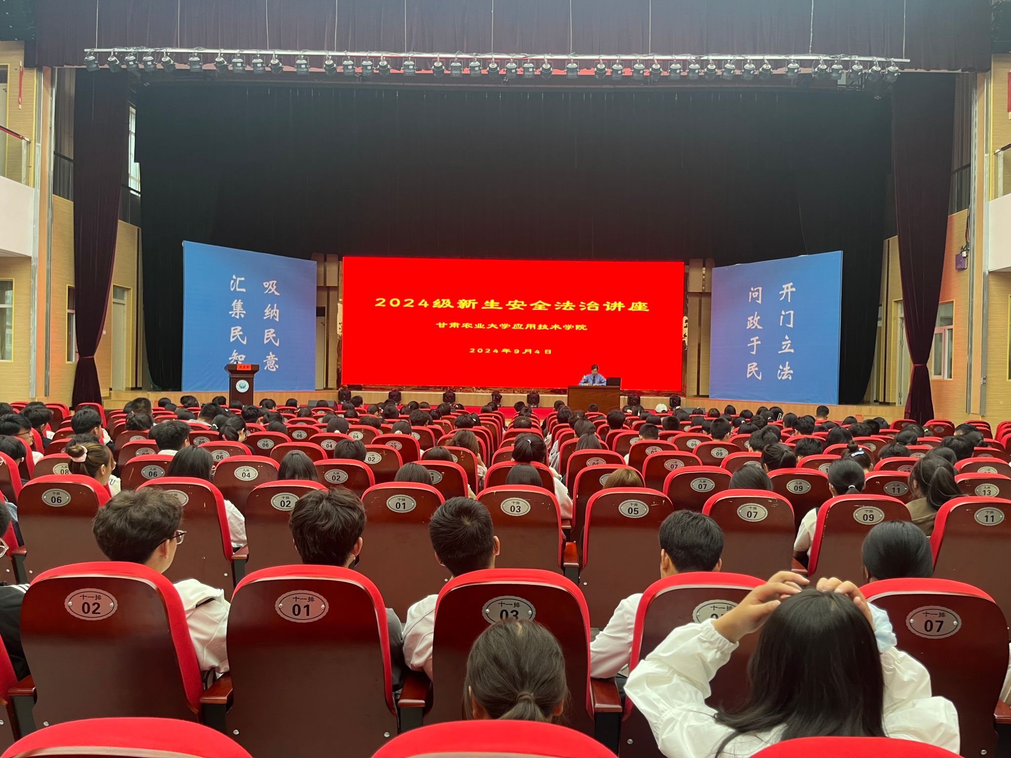 临洮县保密局主任汪贵林阐述了法律在个人生活中的的重要性,以及法律在维护校园安全方面所发挥的关键作用。通过案例分析和知识讲解等形式,让新生深刻认识到国家秘密与国家安全息息相关。同时普及了相关法律法规,引导他们树立正确的国家安全观,增强保密意识,以实际行动守护国家的安全与稳定。