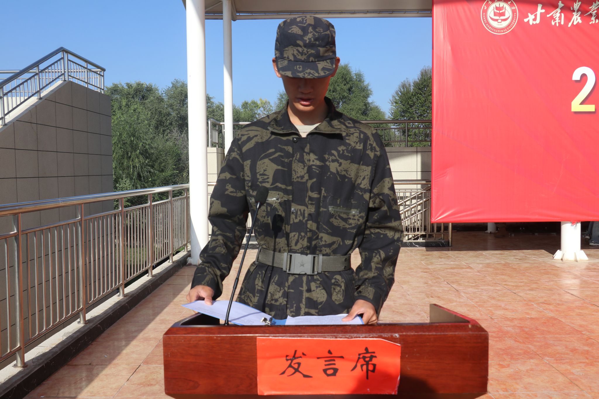 青春不惧骄阳,磨砺铸就成长。bat365正版唯一官网党委副书记薛小琴同志宣读《军训先进集体、个人表彰决定》,授予王占胜、王海军、毛志刚等5名教官“优秀教官”称号;授予马步升、牛瑞珍、党文瑞等35名同学“训练标兵”称号;授予一营三连、国旗护卫队、二营二连等6个连队“优秀连队”称号。薛小琴同志代表学校向为军训工作付出辛劳的教官和老师们表示感谢,向刻苦训练的全体同学表示亲切慰问,向在军训中涌现出来的先进单位和先进个人表示祝贺。