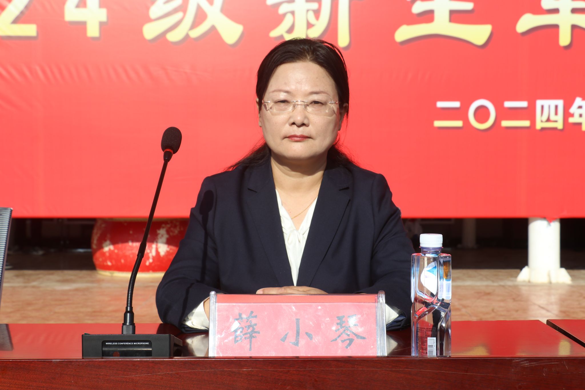 出席本次大会的有全体校领导、临洮县委常委兼县人武部政治委员张小强同志、各处室负责人、2024级全体新生。