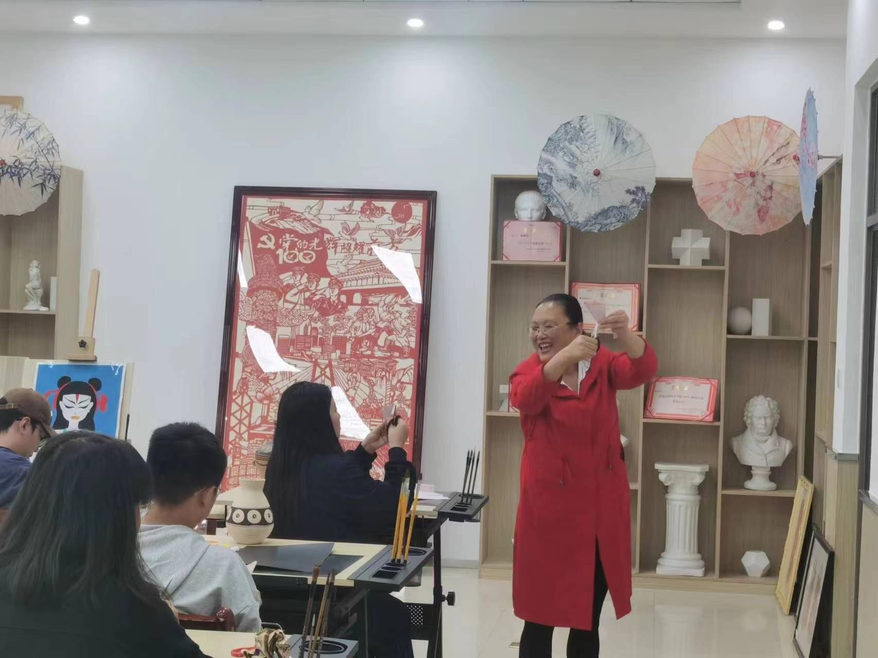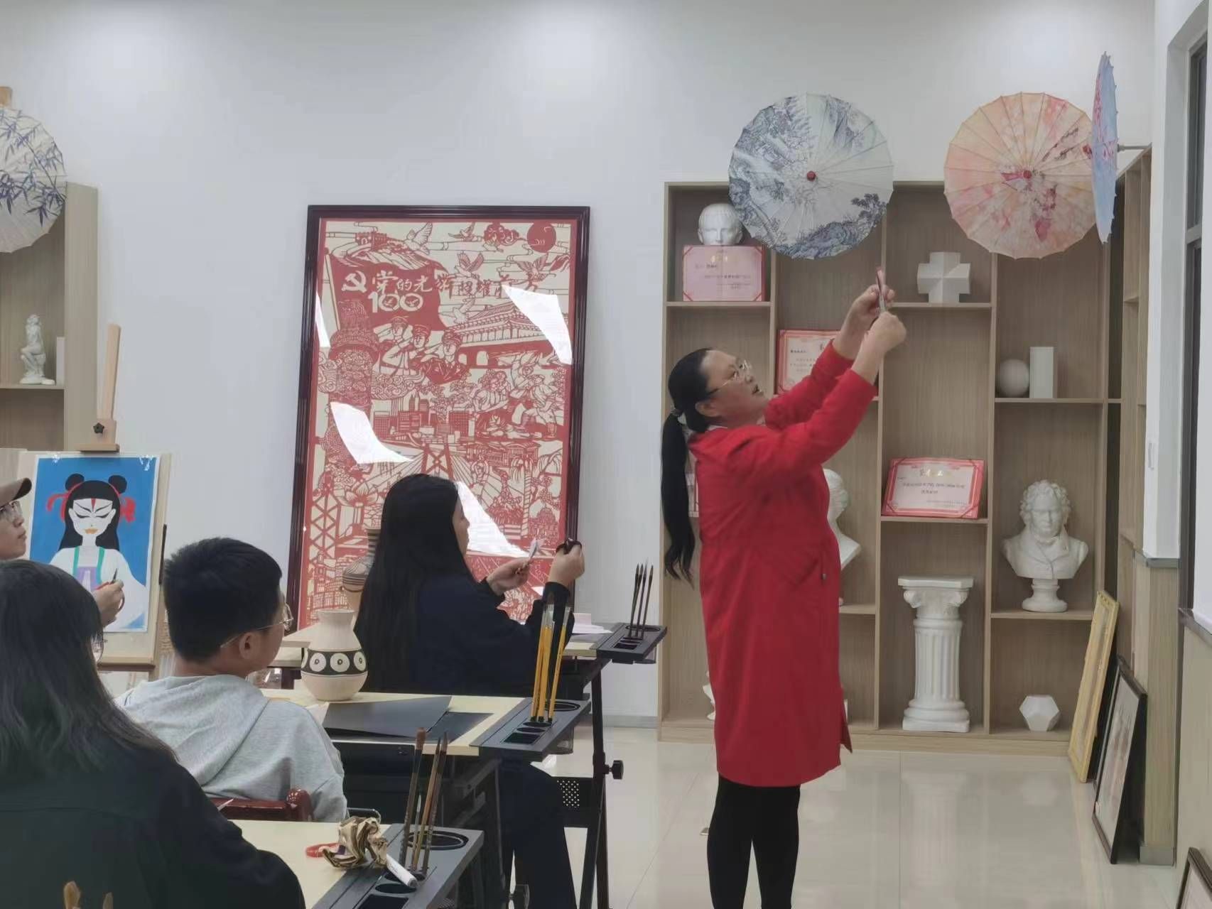 10月24日,学院邀请到剪纸市级代表性非遗传承人、中华文化促进会剪纸艺术委员会委员、中国民间文艺家协会、甘肃省民间文艺家协会、定西市民间文艺家协会会员、临洮县民间文艺家协会副主席毛艳红老师,为学生开展彩陶纹饰的剪纸教学。让学生了解彩陶与剪纸的历史背景、制作工艺、艺术特色及文化寓意,鼓励学生结合现代审美和技术手段,对传统艺术进行创新设计。这不仅能激发学生的想象力和创造力,还能培养他们的动手能力和解决问题的能力,从而加深对中华传统文化的理解和认识。