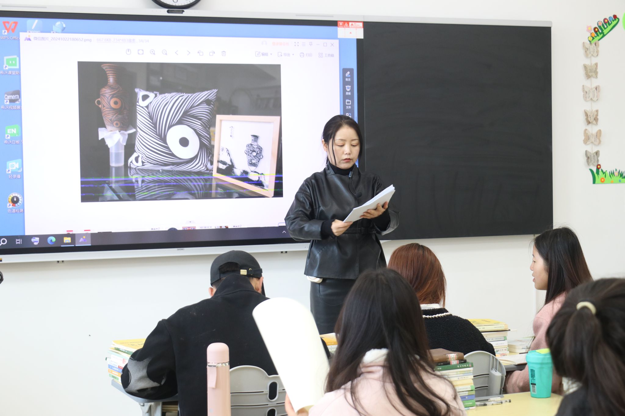 10月23日,学院邀请甘肃省美术家协会会员、岳阳市美协中国画艺委会副秘书长、甘肃省兰州市青少年书画协会理事、李可染画院青年画院院聘画家,甘肃画院青年画院外聘画家鲁玲老师为学生开展彩陶纹饰的绘画教学。课堂上,鲁老师从介绍彩陶的历史背景、制作工艺和纹饰特点、如何绘制彩陶纹饰几个方面出发,引导学生掌握描边、填彩等技巧,鼓励他们发挥想象力,创作具有个人特色的彩陶纹饰作品。这既有利于学生全面了解彩陶纹饰,也能在实践中提高自己的创造力和审美能力。