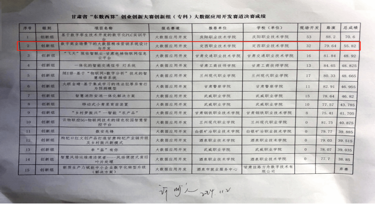 经过紧张激烈的角逐,经贸学院电子商务专业学生吴飞飞、党国源在裴雪、白银珍两位老师的精心指导下,荣获创新组大数据应用开发赛道总分第二名的优异成绩。