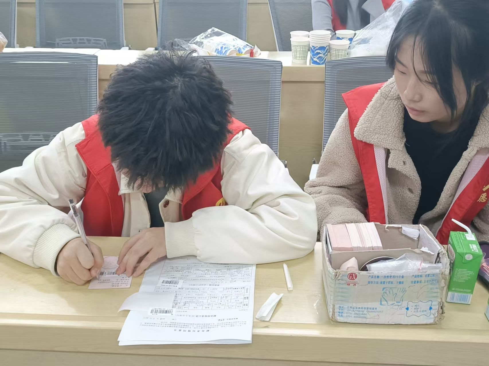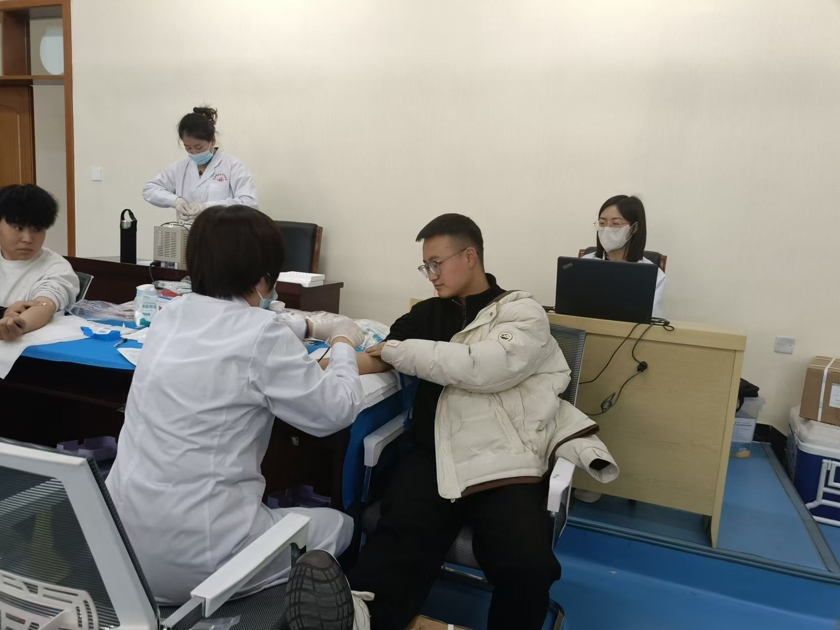 活动现场,同学在医务人员、志愿者的引导下,按照要求填写健康情况征询表和献血登记表,工作人员逐个为献血者进行血压测量、血型检验、病史询问等体格检查,在确定符合献血标准后,大家纷纷挽起袖子,献出自己的一份爱心。在献血队伍中,既有多次献血的“献血达人”,也有初次尝试的“新鲜血液”。每一滴鲜血都承载着师生们满满的爱心,它们汇聚在一起,成为了能挽救生命的希望之光。