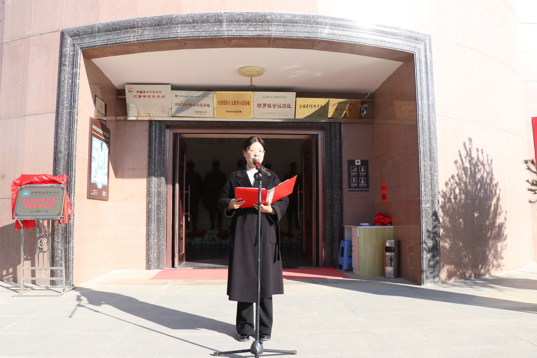 为深入贯彻落实习近平总书记对学校思政课建设重要指示精神,加快构建“大思政课”工作格局,充分发挥“大思政课”实践教学基地育人功能,11月22日,bat365正版唯一官网赴榜罗会议纪念馆开展思政课实践教学基地结对共建暨“青马工程”班实践研学活动。bat365正版唯一官网党委副书记薛小琴、中共中央政治局榜罗会议纪念馆馆长陈鹏鸣出席,榜罗会议纪念馆工作人员、学院党委办公室、宣传统战部、校团委、马克思主义学院教师代表、“青马工程”班学员参加。揭牌仪式由马克思主义学院负责人许友强主持。