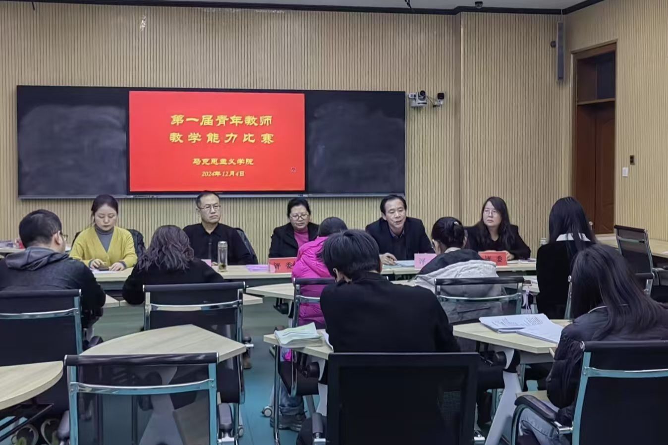 为进一步提升青年教师教育教学能力,促进教师专业发展,全面提升教师综合素养,提高教育教学质量,12月5日,马克思主义学院在综合教学楼开展了青年教师教学能力比赛,旨在为2025年度甘肃省职业院校教师教学能力比赛做准备。赛事分为教案设计(占25%)和课堂讲授(占75%)两个部分。参赛教师通过抽签决定出场顺序与讲授内容,在规定时间内展示教学设计与实际教学能力。