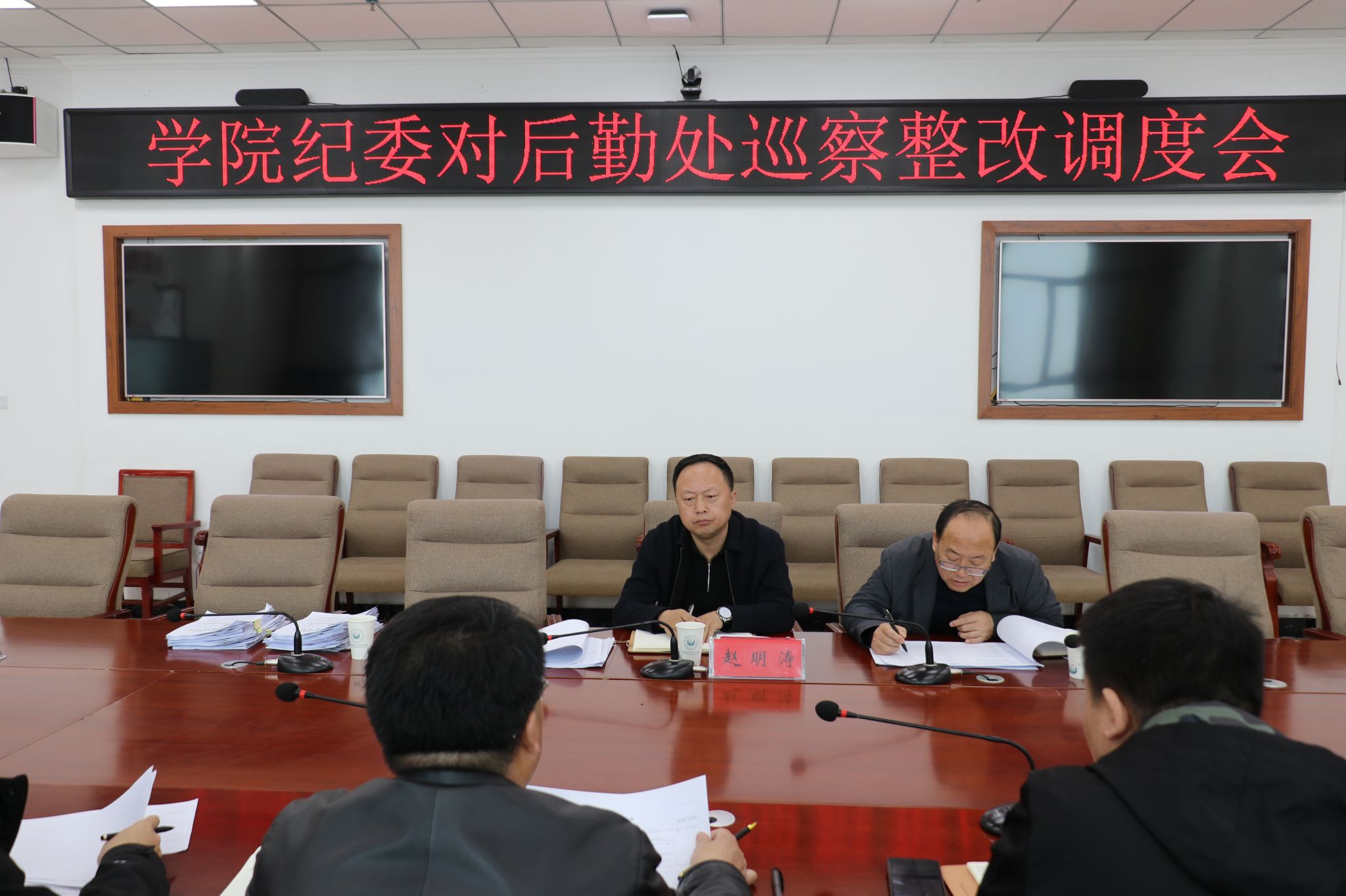 会上,听取了后勤处处长杨治华就17项巡察整改问题的详细汇报,按照市委巡查办、市纪委监委及市委组织部的审核反馈意见,重点就食堂管理、食品安全、设施维护、物资采购、校园安全保障等方面,对整改措施重新进行了细化优化和整章建制。