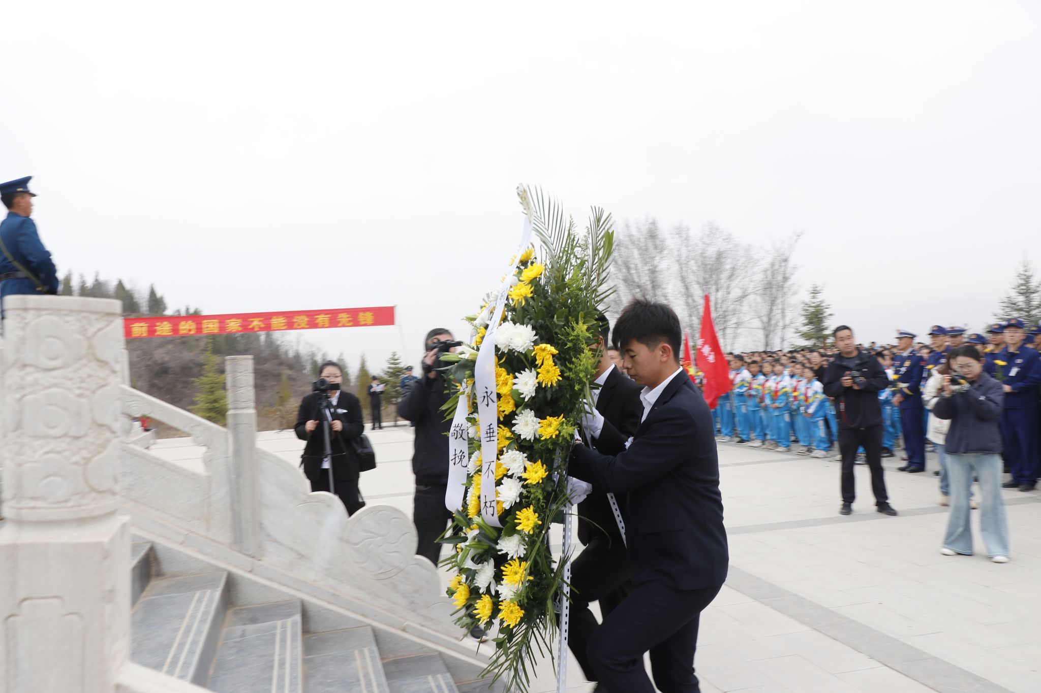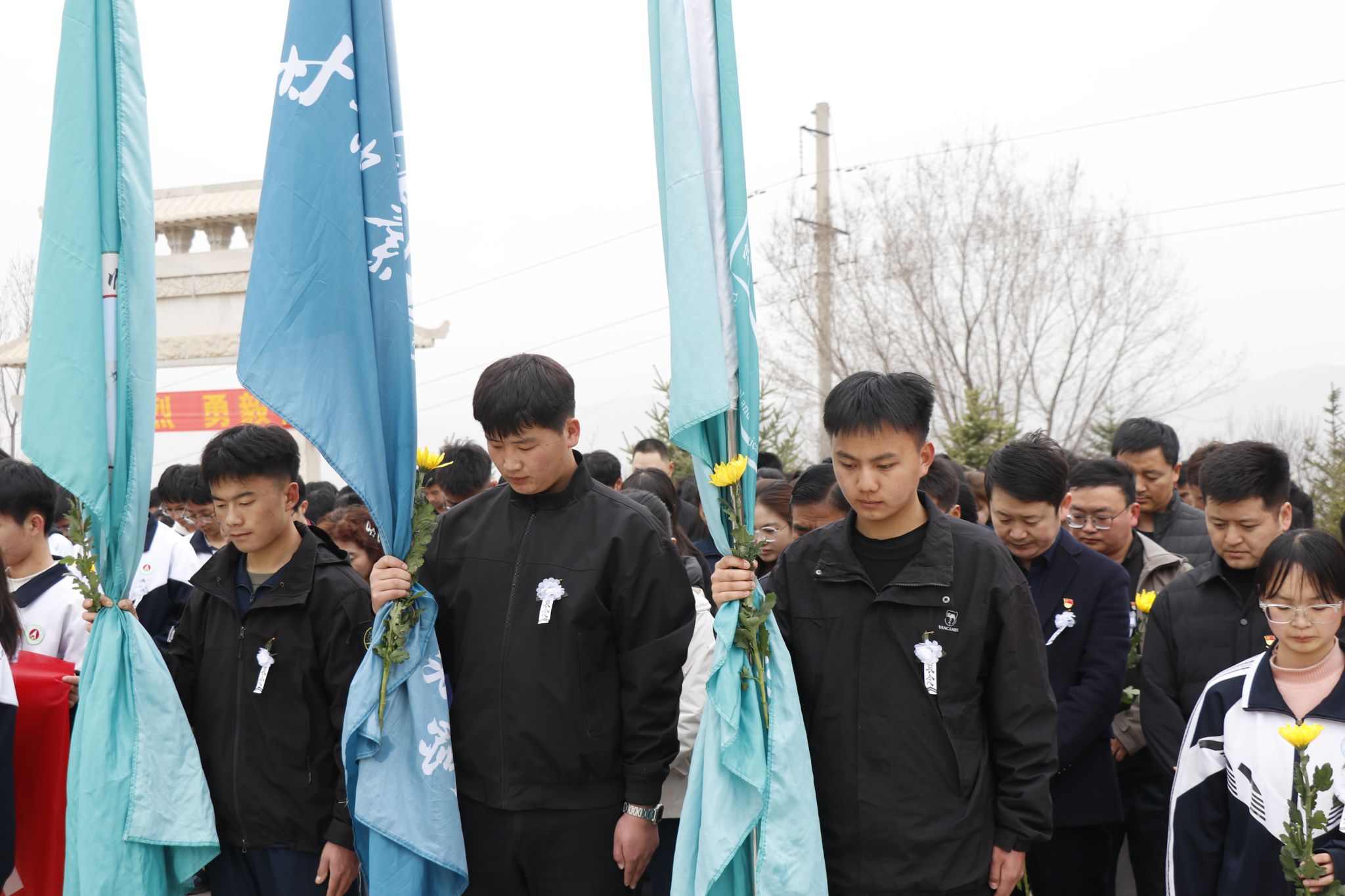 烈士纪念碑前,苍松挺拔,翠柏含肃。全体师生列队肃立,在庄严肃穆的氛围中依序完成祭扫仪式。通过敬献花篮、默哀追思等环节,深切表达对革命先烈的缅怀与崇敬之情。