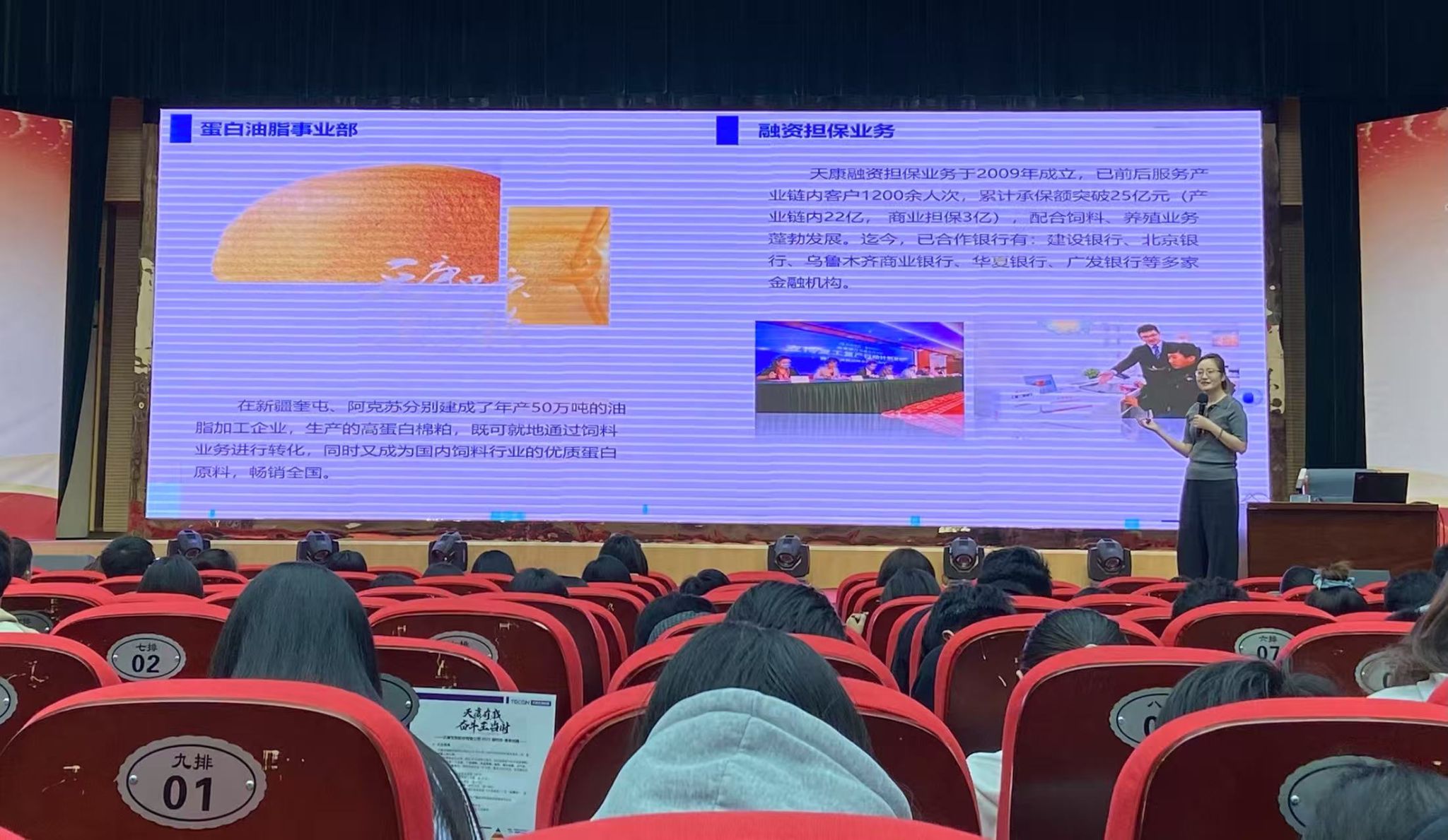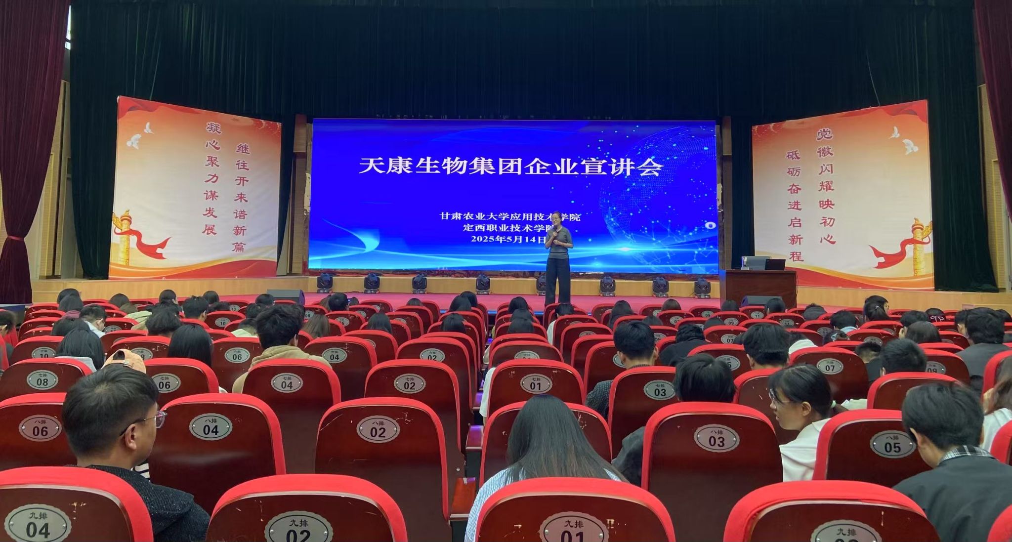会上,杨红系统介绍了天康生物集团的发展历程,重点解读了集团产业布局,涵盖从畜禽良种繁育、饲料研发生产、动物疫病防控到畜产品精深加工的全产业链体系,展现了集团协同发展的强大优势。在人才培养与职业发展板块,杨红详细阐释了集团的组织架构及职责分工,清晰呈现天康生物科学完善的职业晋升通道,从技术骨干到管理精英的进阶路径,为在场学子点亮职业发展明灯。此外,杨红发布了西北区 2025 届校园招聘要求,围绕专业素养、实践能力等核心标准,明确企业人才需求,并介绍了涵盖薪资待遇、福利保障、成长培训的优厚人才政策,充分彰显企业惜才爱才的诚意。