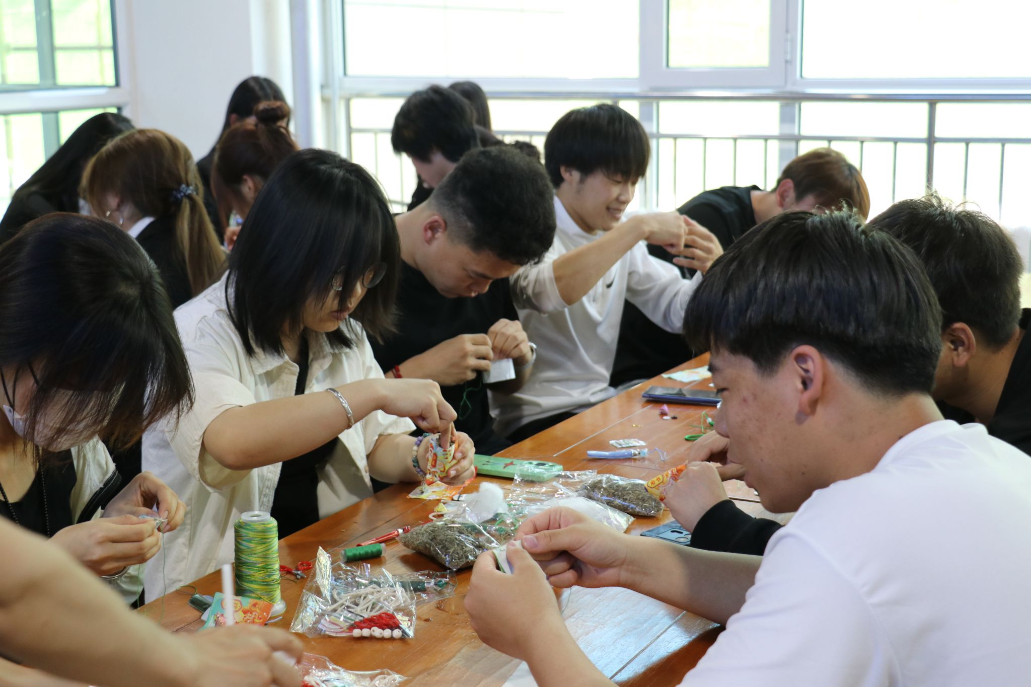 5月 29 日,bat365举办 “万粽一心 共创美好愿景” 端午节主题活动,各族师生通过包粽子、编五彩绳、制香囊等民俗体验,深化民族团结共识,铸牢中华民族共同体意识。活动现场,糯米粽叶整齐陈列,不同民族师生围坐协作,卷叶填米间粽叶翻飞,很快盘子里便堆满棱角分明的粽子。香囊制作区,有学生分享家乡香料搭配技巧:“这些药材在民俗里有祈福之意,和大家共制更显文化活力。”五彩绳编织时,有学生将民族纹样融入手绳,递给同伴:“纹样代表吉祥,各民族如彩绳般拧在一起才最牢固。”此次活动以端午为媒,让师生在指尖技艺中触摸文化根脉,在协作实践中感知 “中华民族一家亲” 的深刻内涵。