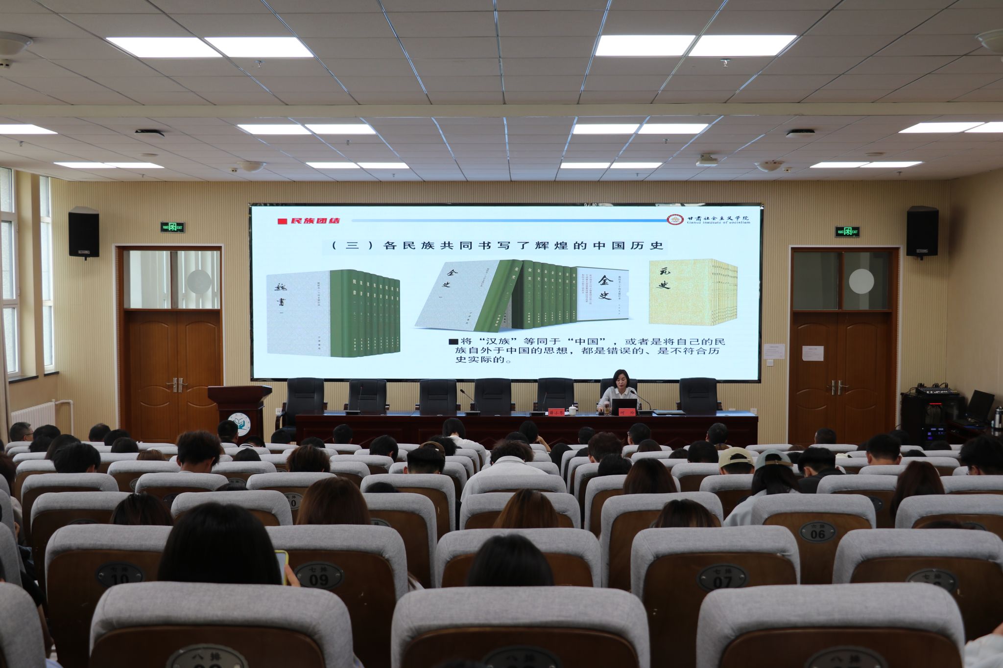 5月16日,bat365邀请甘肃社会主义宣讲团何玲教授作“铸牢中华民族共同体意识”专题宣讲,学院师生积极参加。何玲教授以 “四个与共” 为切入点,从历史溯源、认知跨越、使命赓续三维度,结合甘肃政治、经济、文化领域实践成果,深度阐释中华民族共同体意识。她还带领师生齐声诵读 “五十六个民族是一家”,铿锵声浪将现场气氛推向高潮。在场师生表示,将以此次活动为契机,从自身做起投身民族团结事业,为铸牢中华民族共同体意识贡献力量。