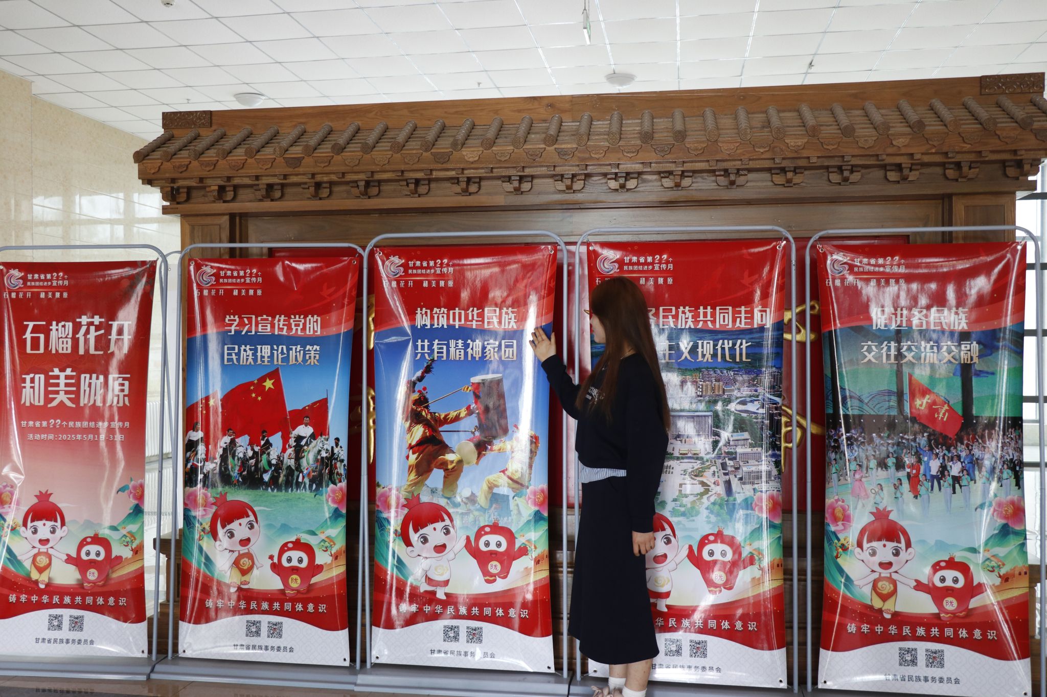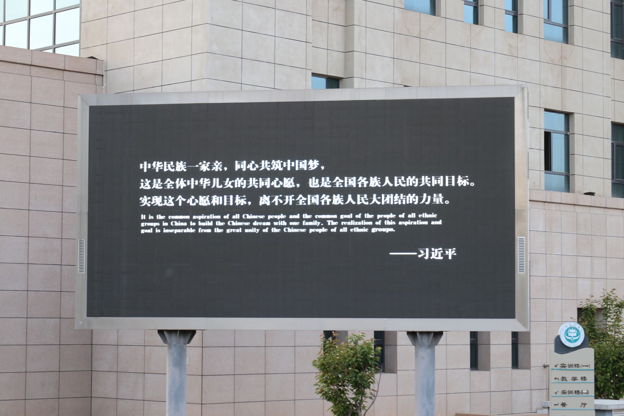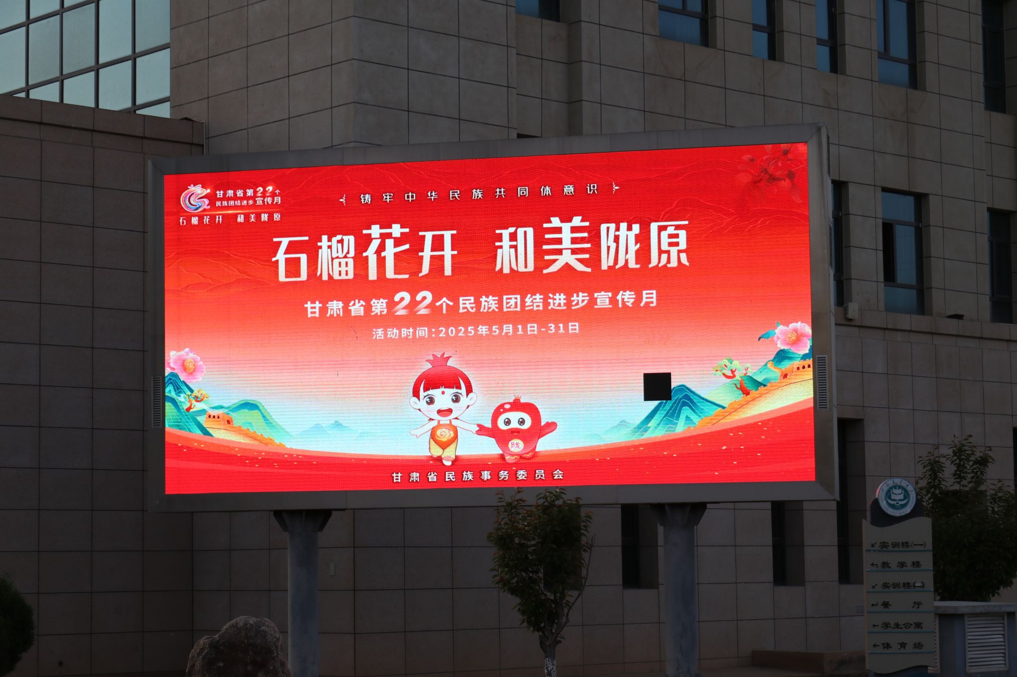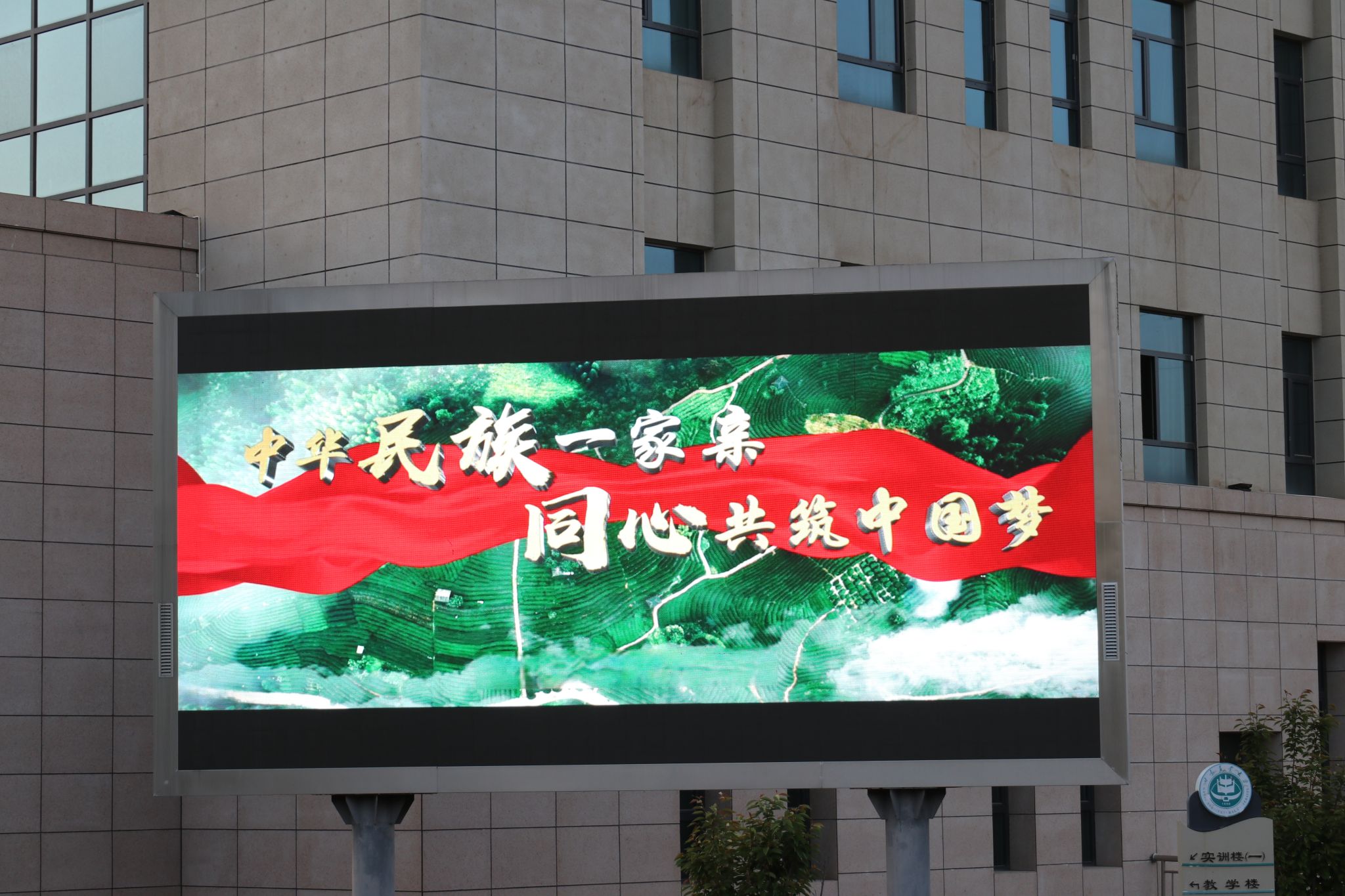 5月6日,bat365启动 “万屏点亮铸牢中华民族共同体意识” 主题宣传活动,通过电子屏展播与海报宣传构建立体教育矩阵。学校电子屏循环播放 “铸牢中华民族共同体意识”主题宣传片与当代案例展现各民族交融历程。综合楼、图书馆等区域电子屏同步滚动 “中华民族一家亲” 等标语。综合楼大厅摆放主题宣传海报,以长城、民族服饰等元素传递 “四个与共”理念。活动通过“动态影像+静态视觉”沉浸式传播,日均触达师生超 3000 人次,为深化民族团结进步教育营造浓厚氛围。