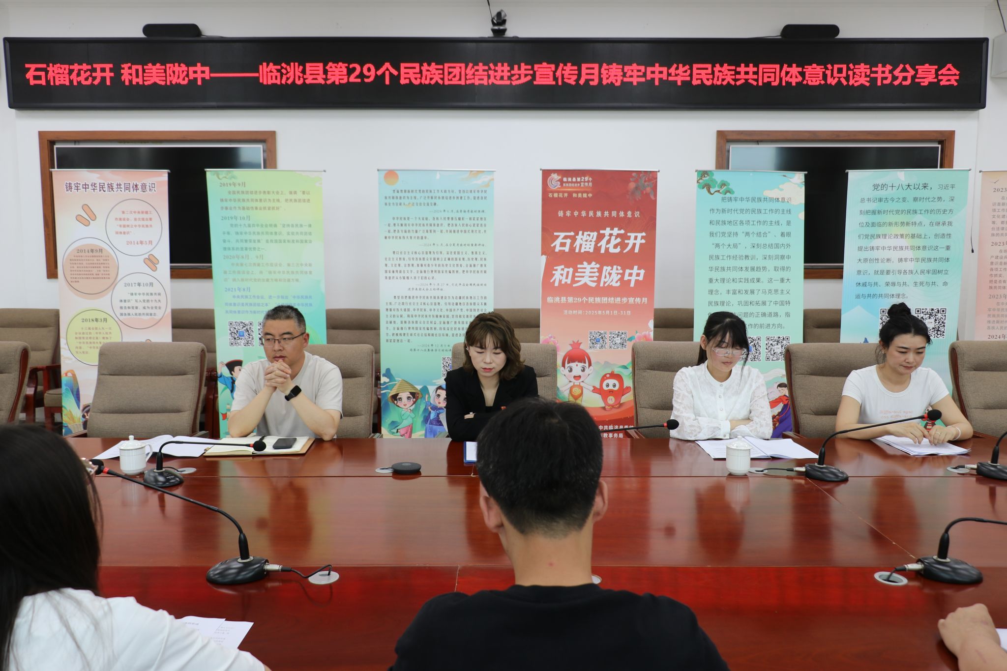 5 月 29 日下午,在bat365举办了铸牢中华民族共同体意识读书分享会。临洮县统战部副部长、民宗局局长庞雨琰,民盟和工商联代表以及师生代表齐聚一堂,分享了《中华民族共同体概论》《何以中华》《雪山大地》等优秀著作及读书感悟。分享者们从不同角度解读书中蕴含的民族文化与团结力量。庞雨琰结合工作实践,阐释了习近平总书记关于民族工作重要思想的深刻内涵;民盟和工商联代表从历史文化视角,展现各民族灿烂文化;学生代表则分享了书中跨越时空的团结故事。通过分享,同学们在字里行间领略到了民族文化魅力,感受到团结力量,深化了对铸牢中华民族共同体意识内涵的理解。