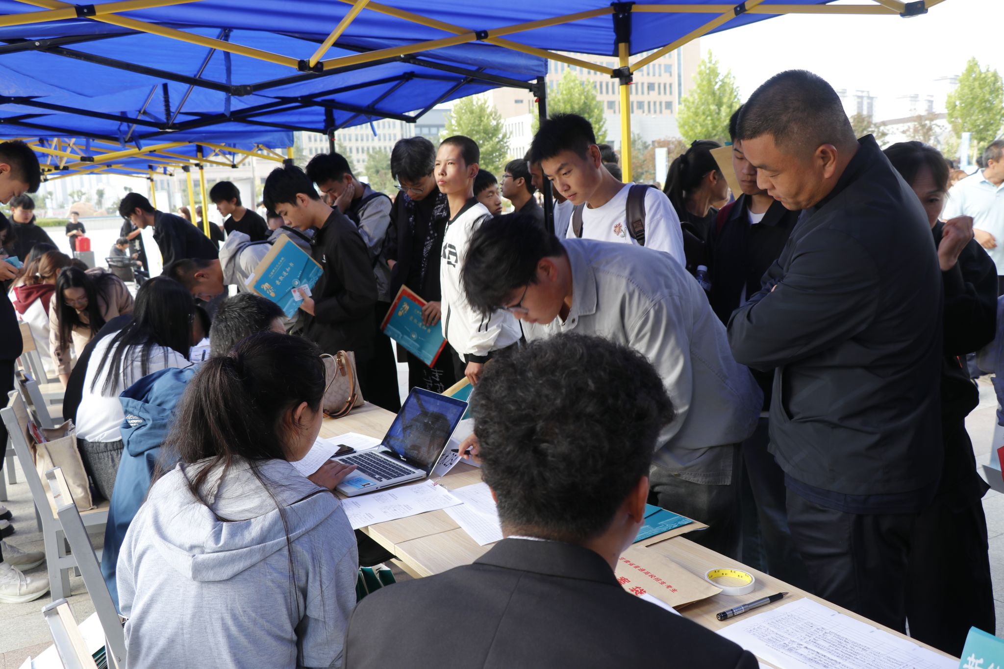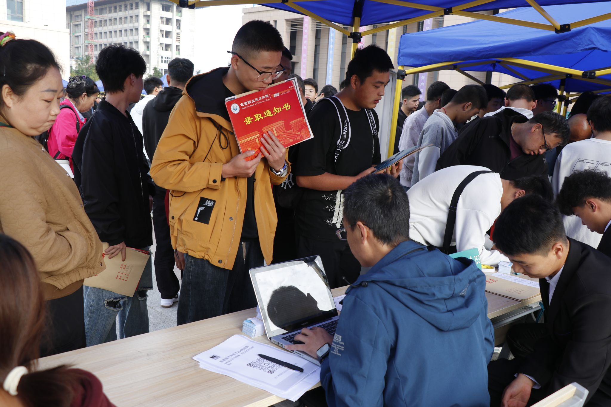 协助新生们完成报到手续