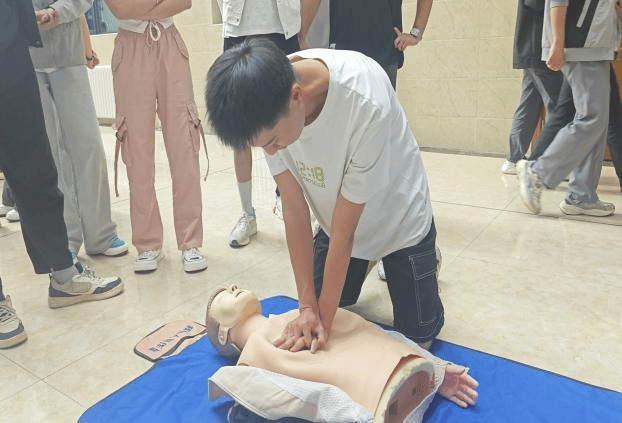 实操环节中,同学们踊跃参加、热情高涨,在医护人员的专业指导下,不仅掌握了紧急事态下的正确处理方式,并通过模拟人反复练习,不断规范自己的救援动作。