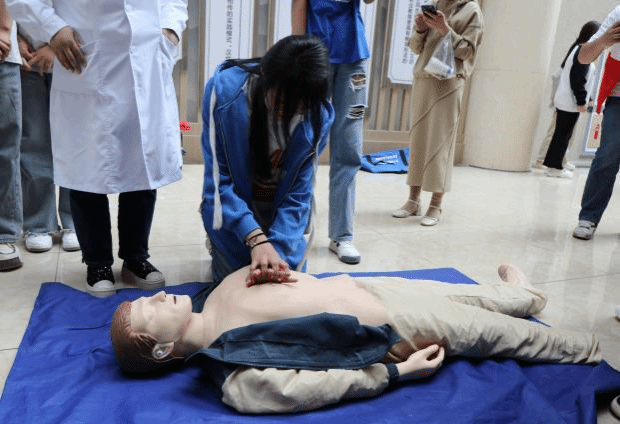 此活动以讲座和现场实践的形式展开,活动中,急救中心主任孙林医师向同学们普及了现场心肺复苏、包扎止血及海姆立克急救知识。通过多媒体展示和模拟人演练相结合的方式,就急救重要性、急救基础知识、如何在事故发生第一时间采取正确有效的应急措施等进行详细讲解。讲座现场气氛热烈,学生们认真聆听并积极互动。