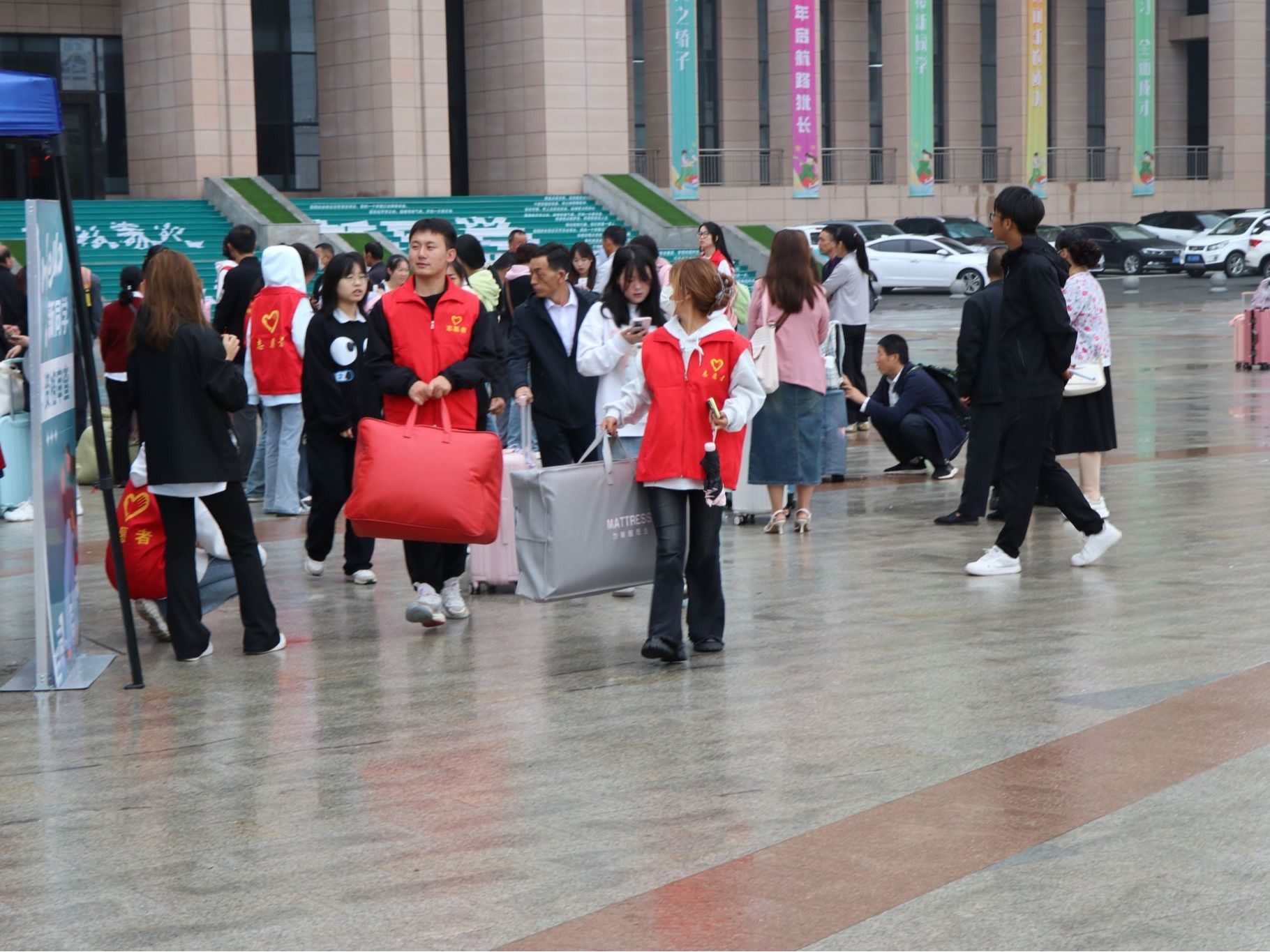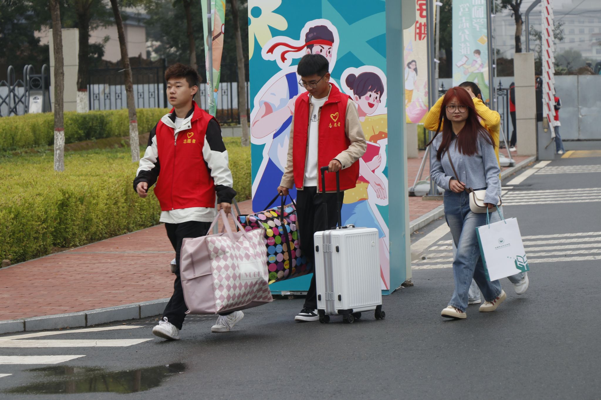 在迎新现场,一支由高年级学生组成的志愿者队伍成为了最亮丽的风景线。他们身穿红色马甲,面带微笑,为新生提供指引、搬运行李、解答疑问等贴心服务。从车站接站到宿舍引导,从办理手续到校园介绍,志愿者们用实际行动诠释了“奉献、友爱、互助、进步”的志愿精神,让初来乍到的新生感受到了来自学长学姐的温暖与帮助,也展现了定职院学子良好的精神风貌。