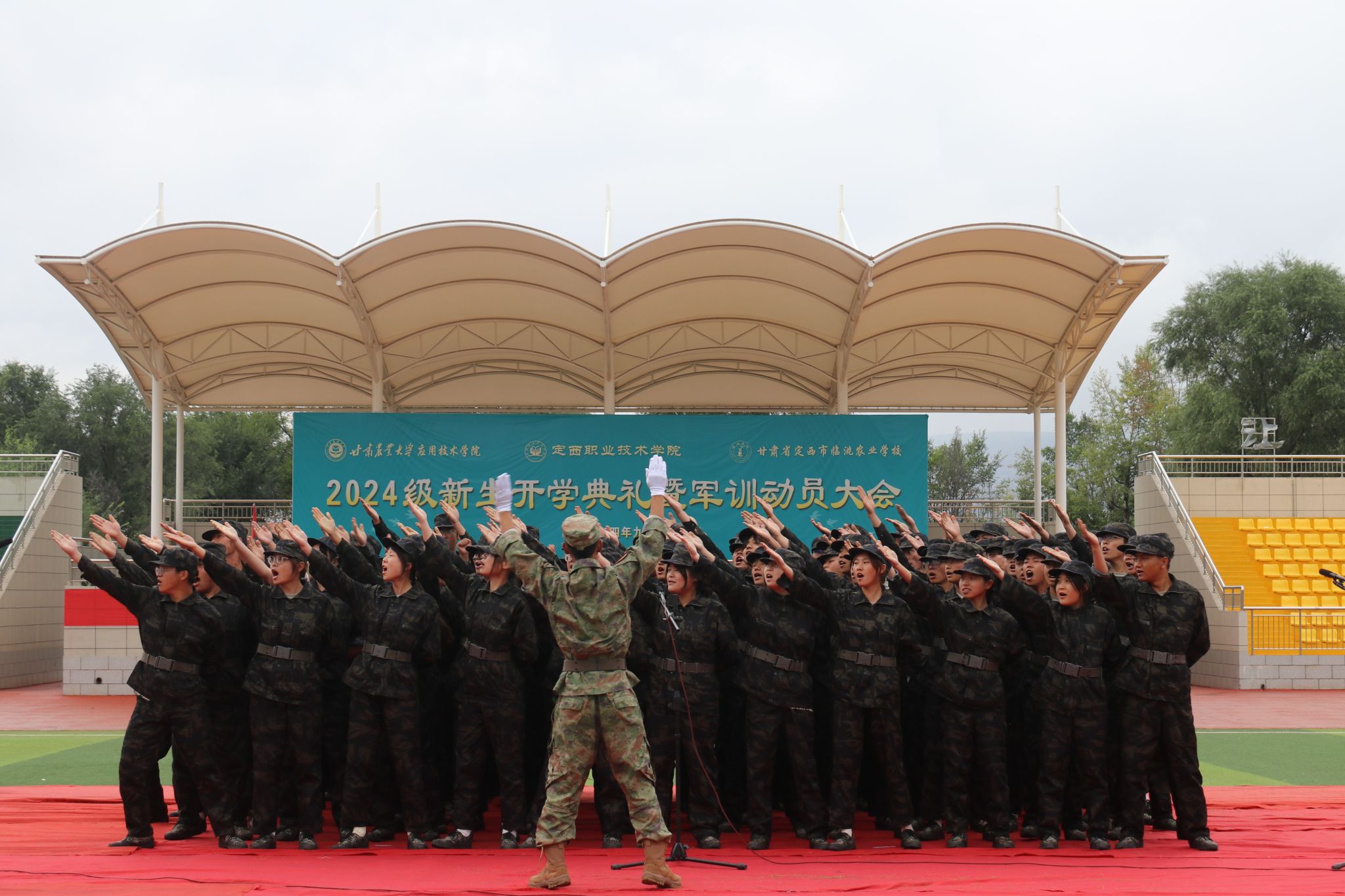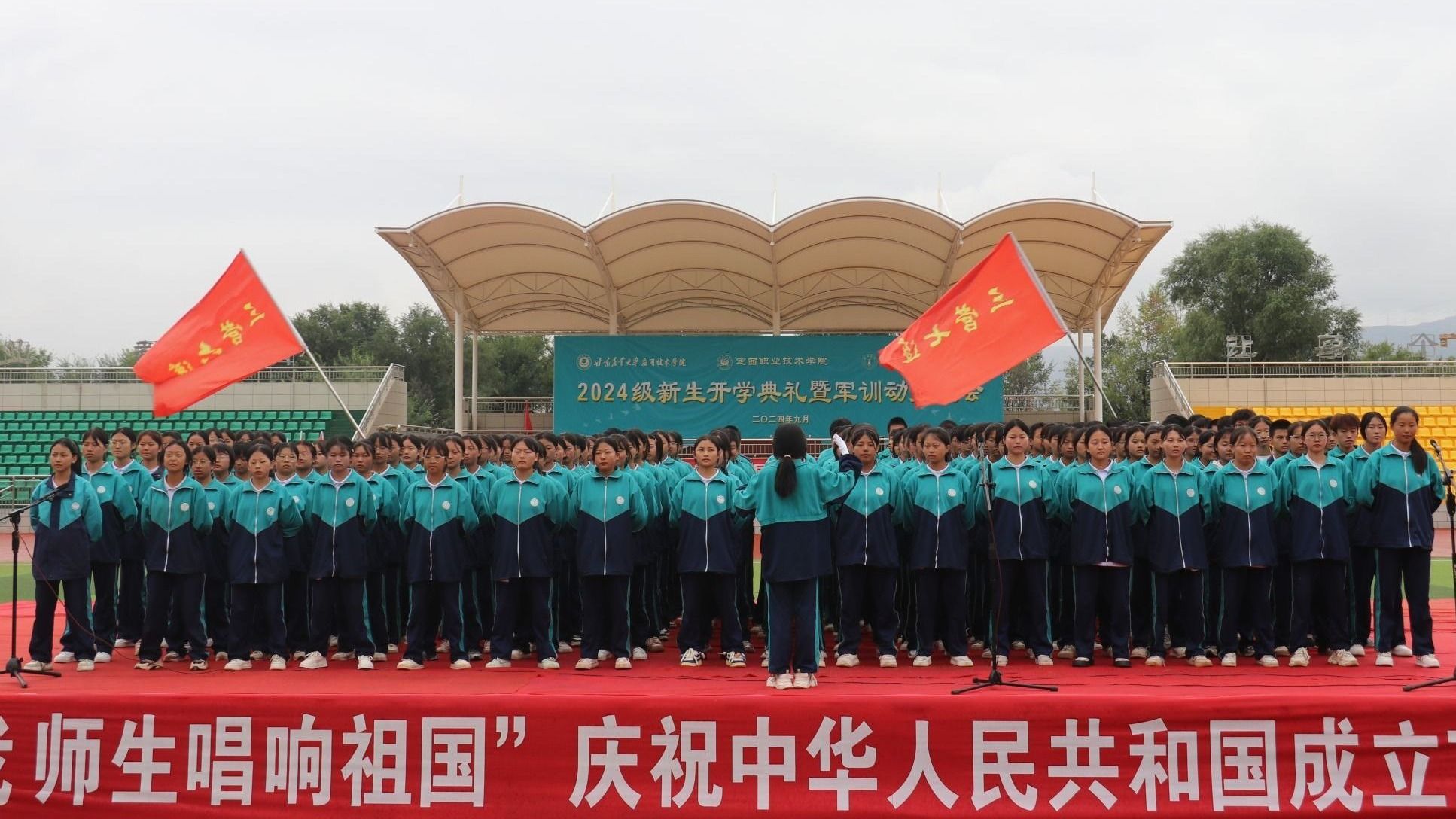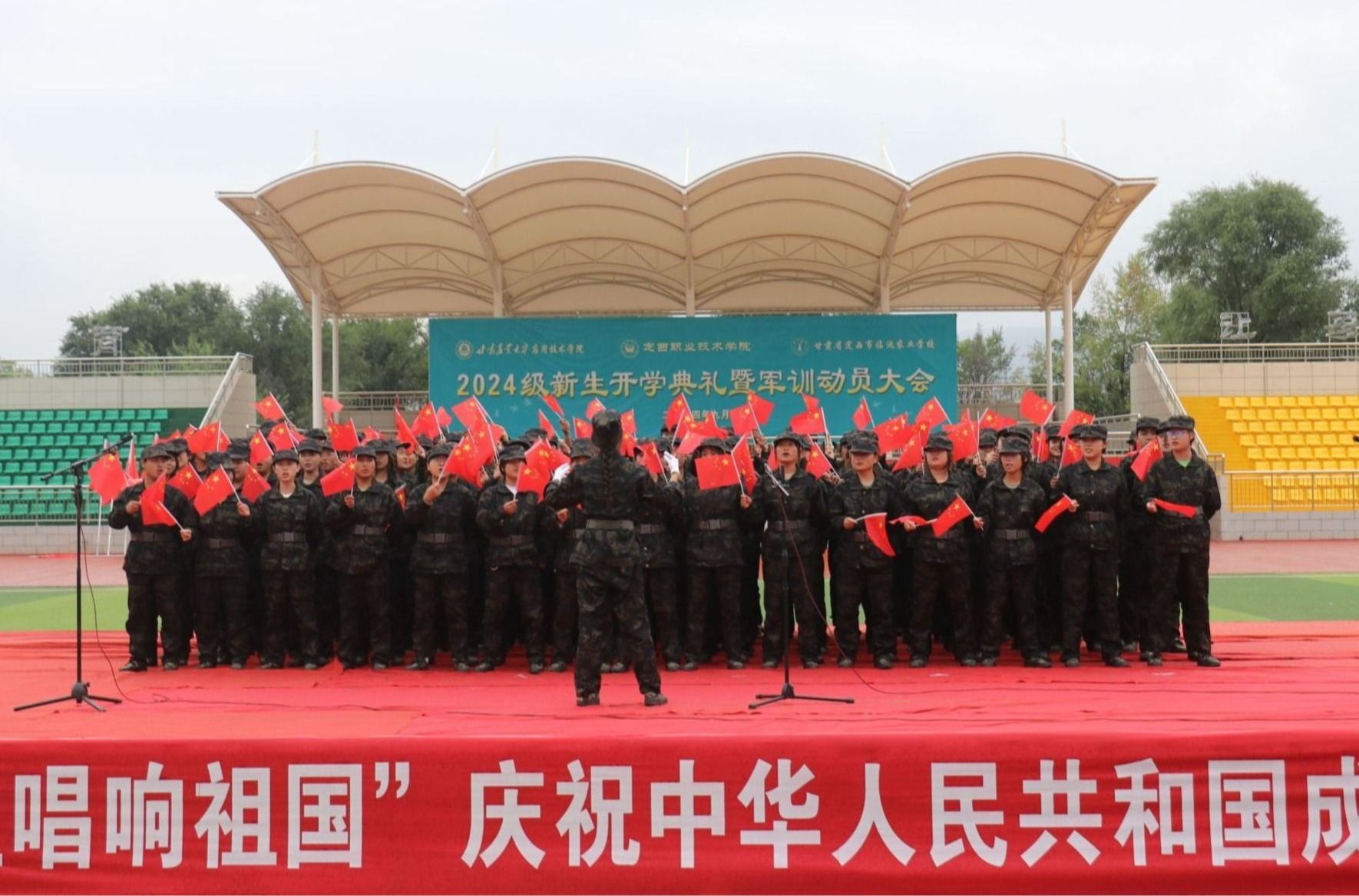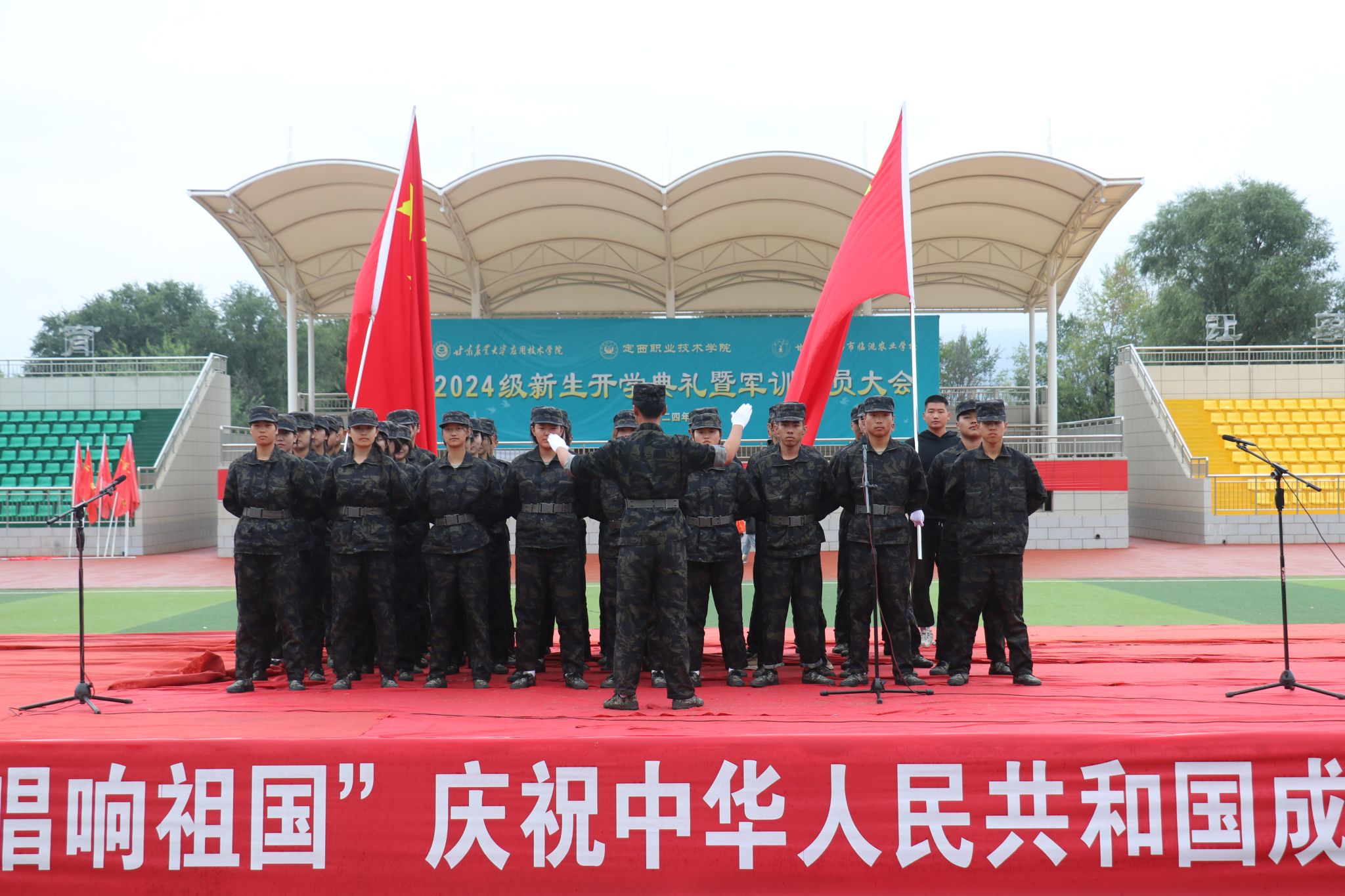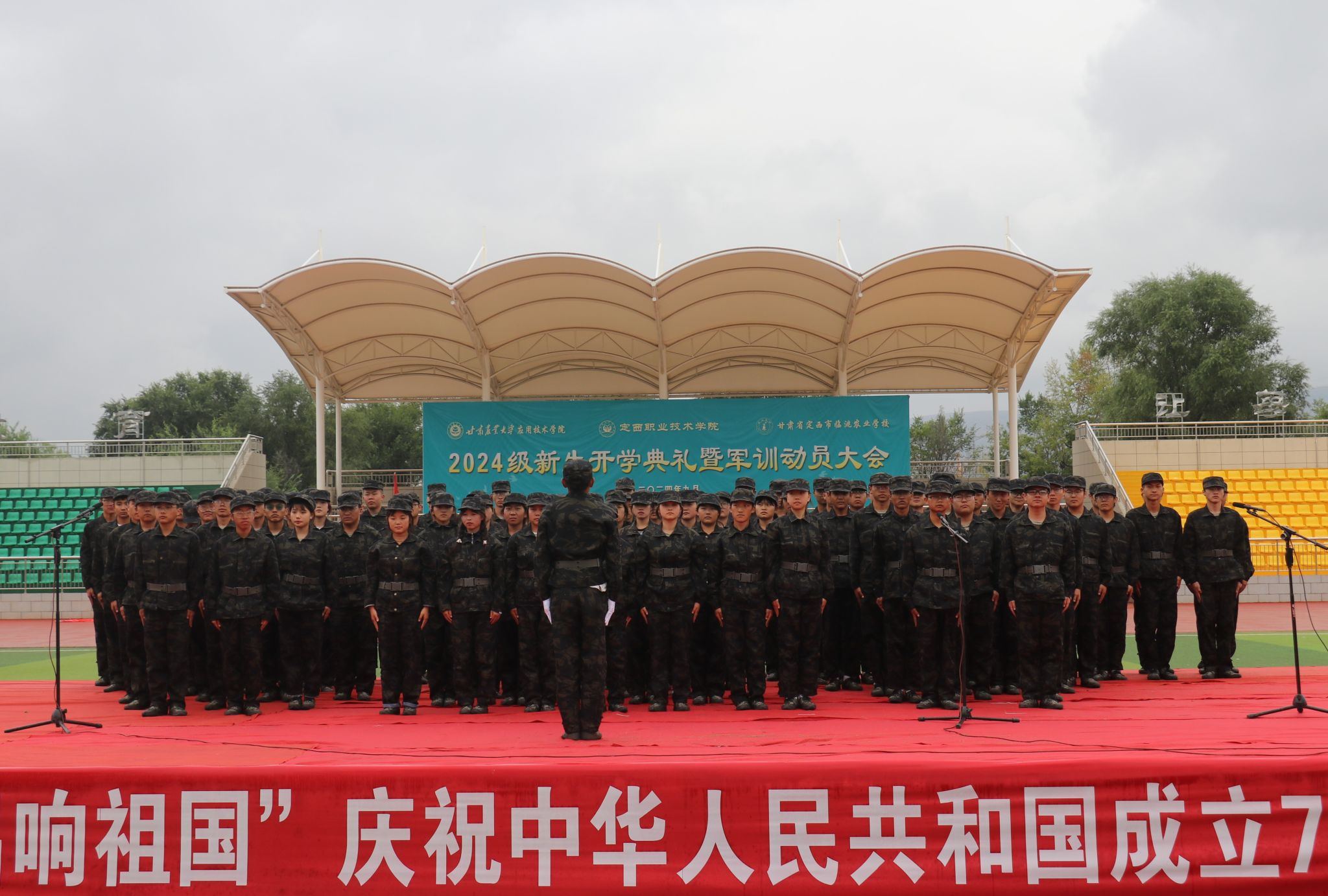 金秋送爽,丹桂飘香。正值国庆佳节之际,甘肃农业大学应用技术学院、bat365正版唯一官网暨临洮农校共同在学院体育场举办“强国复兴有我 师生唱响祖国”庆祝中华人民共和国成立75周年合唱比赛。2024届全体新生参加本次了合唱比赛,为新生军训生活增添了一抹亮丽的色彩。
