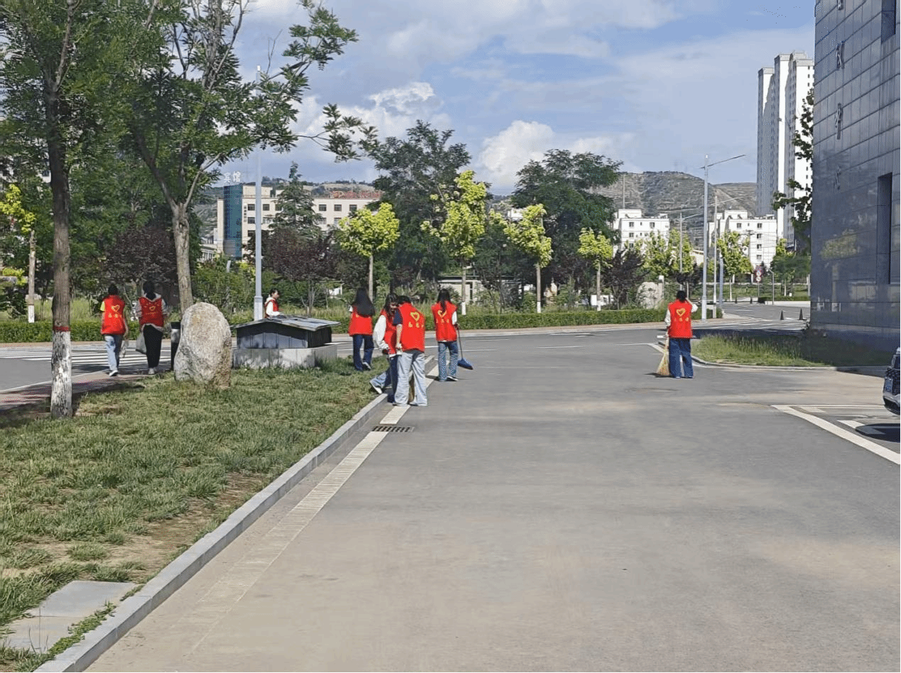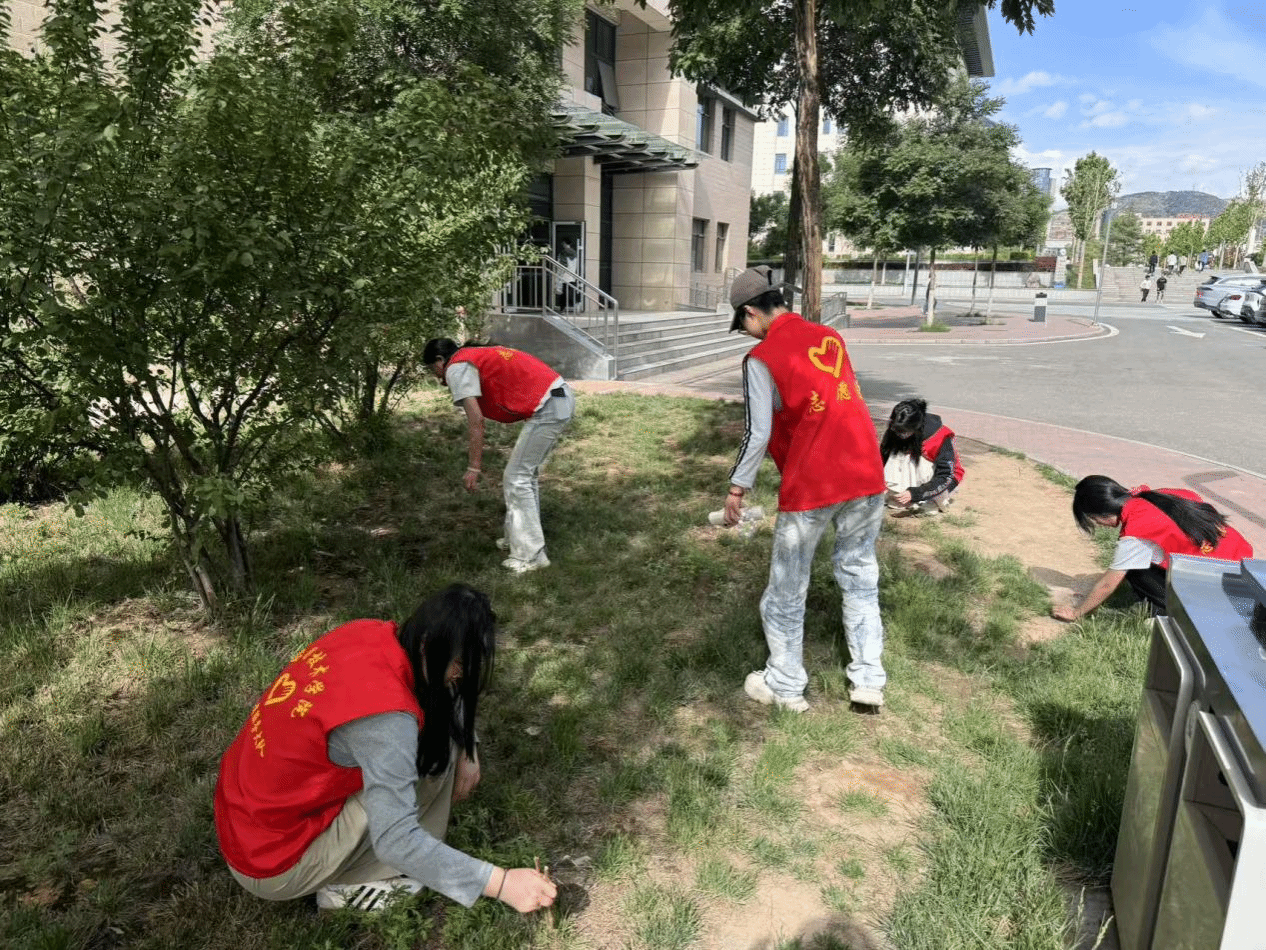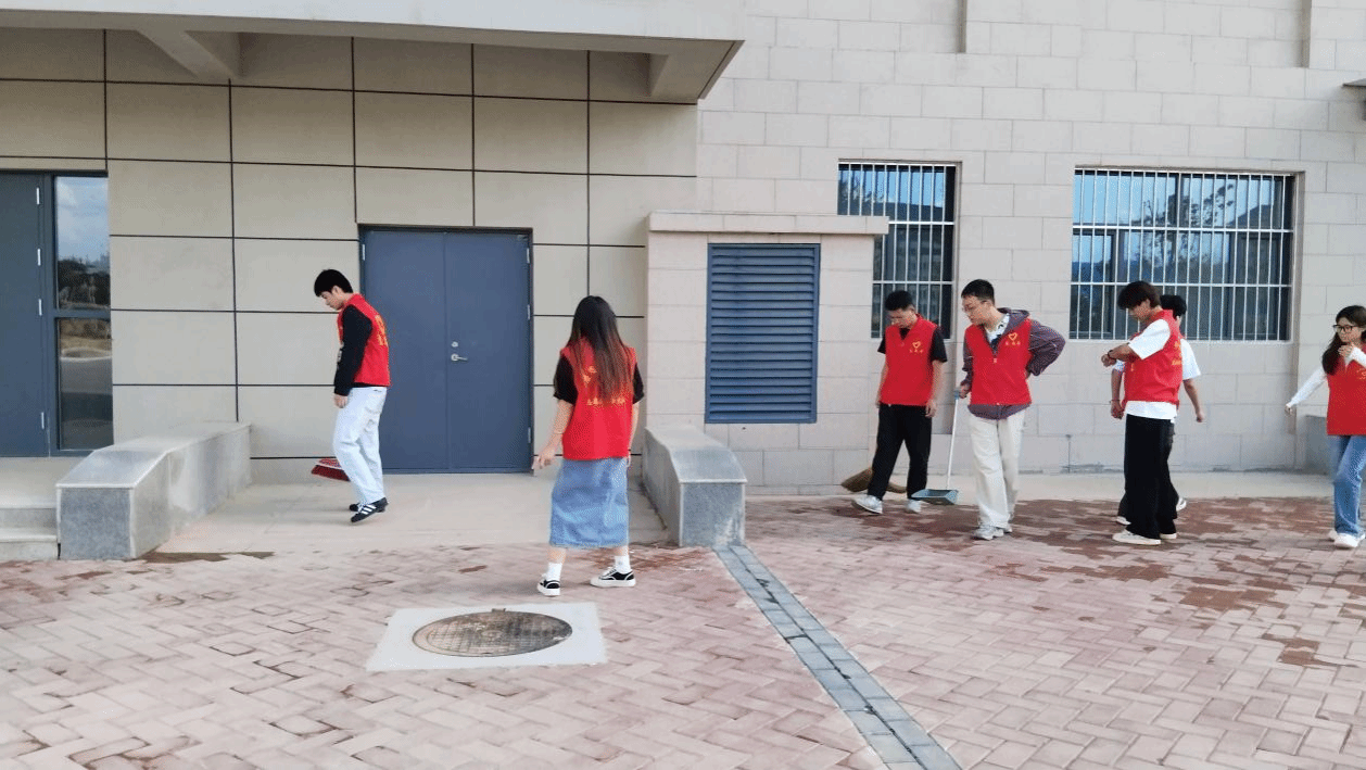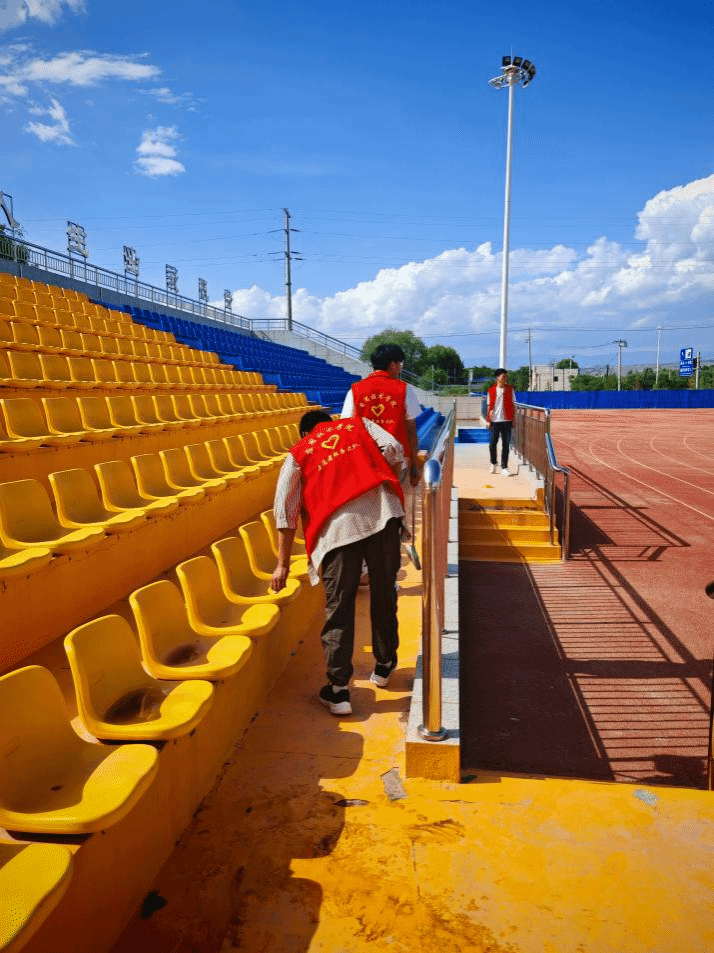 志愿者们的清洁范围涵盖校园各个角落。在体育场看台,志愿者们一丝不苟地擦拭着每一排黄色座椅,确保公共设施洁净如新;在绿化带中,同学们弯腰捡拾散落的垃圾,不放过任何一个角落;在教学楼前的广场上,志愿者们挥舞着扫帚,将地面清扫得一尘不染;在花坛周围,大家细心呵护着每一株花草,清理周边杂物。