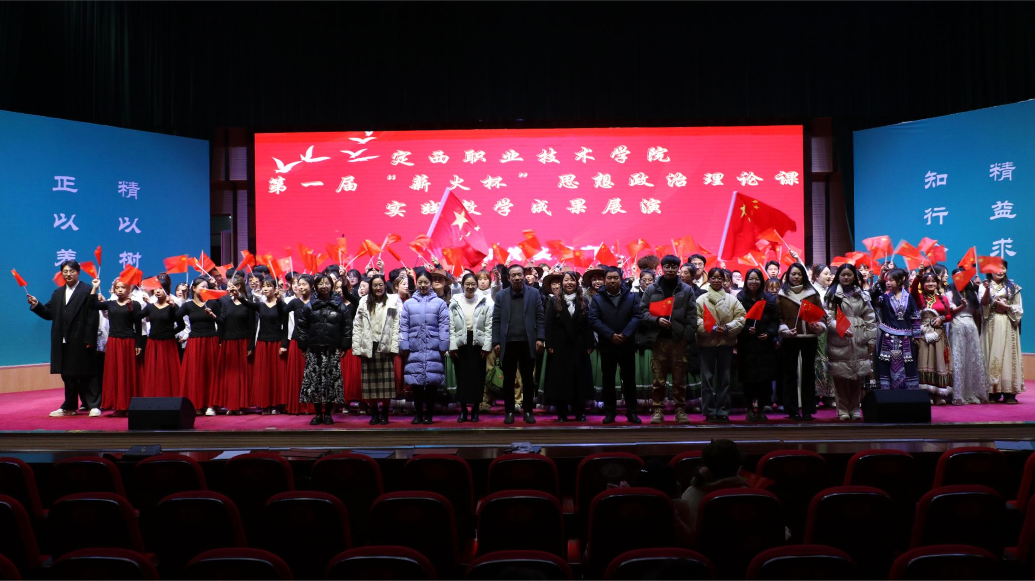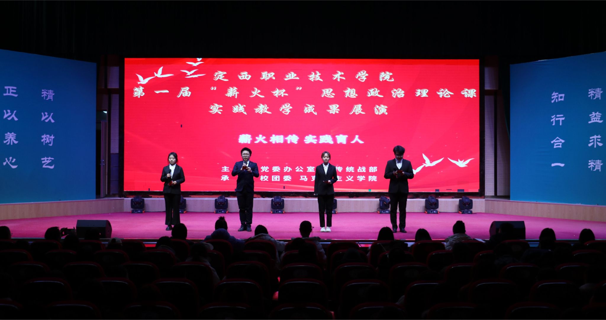 为集中展现bat365思政课实践教学育人成效,加快构建“大思政课”育人新格局,12月9日晚,由党委办公室、宣传统战部、校团委、马克思主义学院联合举办的首届“薪火杯”思政课实践教学成果展演在学校大礼堂隆重举行。