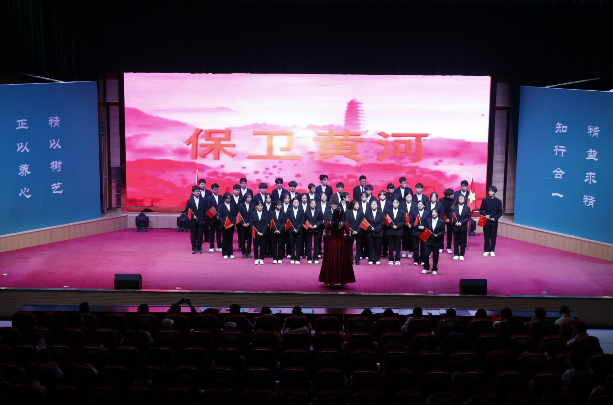 在“热血丰碑”篇章中,畜牧兽医252班演绎的情景剧《抗日英雄赵一曼》,真切再现了这位巾帼英雄在白山黑水间的英勇事迹;动医251班气势恢宏的合唱《黄河大合唱》,则以磅礴声浪唱出了中华民族不屈的魂魄,将现场气氛推向首个高潮。