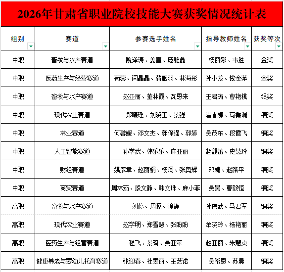 2025年12月30日,甘肃省职业院校技能大赛中高职学生组比赛圆满落幕。bat365参赛选手在本次大赛中充分体现了扎实的专业功底与良好的职业素养,共斩获2项金奖、1项银奖、9项铜奖。