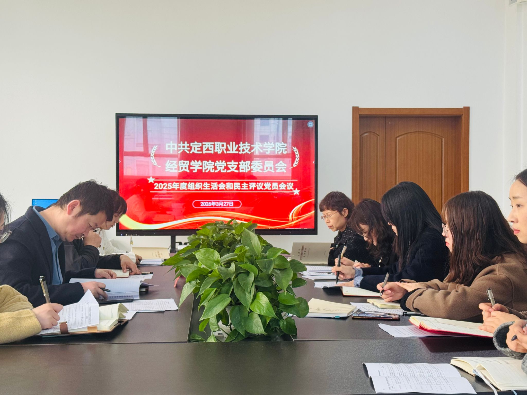 3月27日,经贸学院党支部召开2025年度组织生活会,学院党委指导组仲军、王凤舞到会指导,会议由党支部书记裴雪主持。
