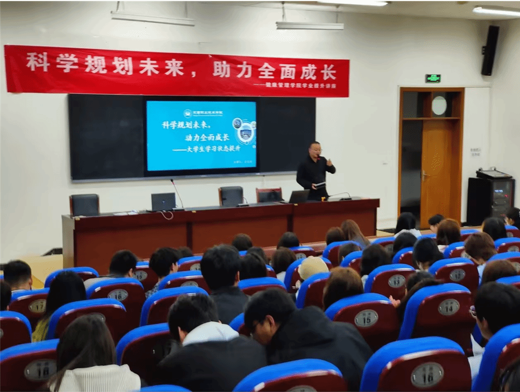 心理健康服务中心王文杰老师以 “科学规划未来 助力全面成长” 为主题,聚焦大学生学习状态提升,从学习动机、科学学习方法、学习心理障碍及调适三大核心板块讲解。王老师深入分析大学与高中学习的差异,阐释学习动机的作用与激励方法,分享广泛阅读、科学记忆及整体与部分结合等高效学习法,同时梳理认知失调、情绪失调等常见学习心理障碍,给出科学面对得失、培养学习兴趣,提升学习潜能等调适策略,助力大学生突破学习瓶颈,建立科学学习模式。