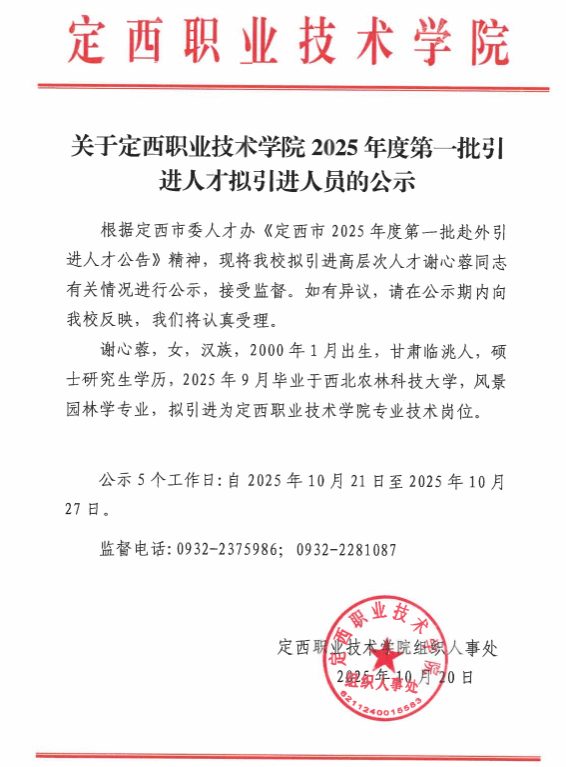 关于定西市2025年第二批引进人才bat365正版唯一官网(往届生)拟引进人员的公示
